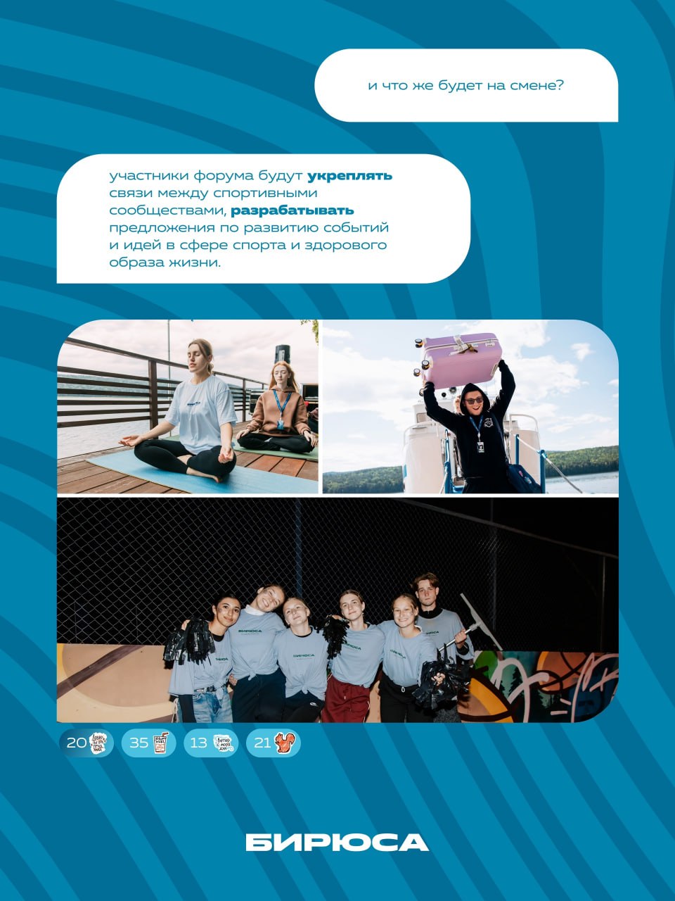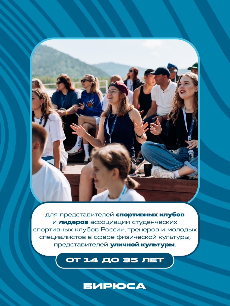Всероссийская смена Физическая культура и спорт территории инициативной молодёжи Бирюса это энергия, поддержка команды и точка роста для тех, кто двигает молодёжный спорт вперёд!