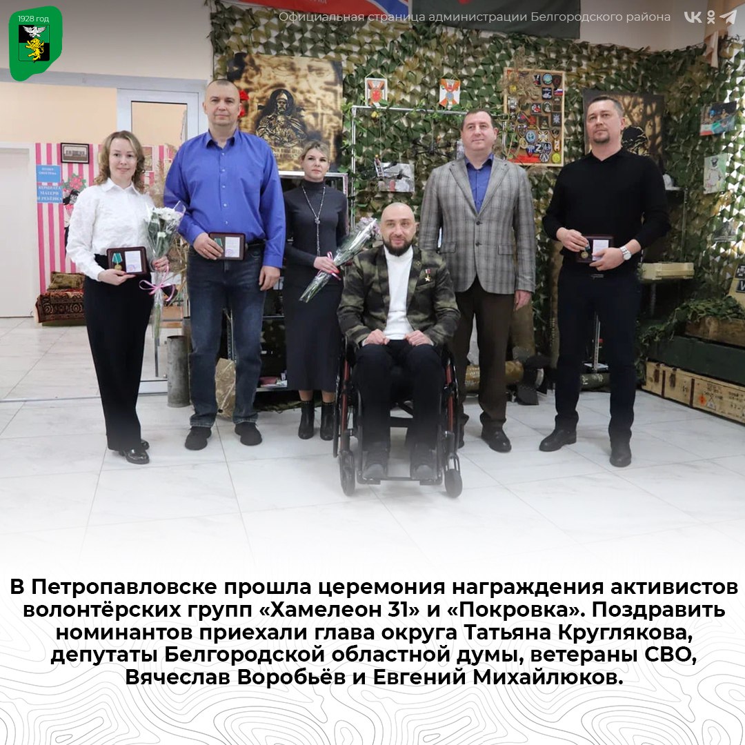 В Петропавловске прошла церемония награждения активистов волонтёрских групп «Хамелеон 31» и «Покровка»