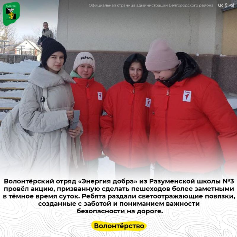 Волонтёрский отряд «Энергия добра» из Разуменской школы №3 провёл акцию, призванную сделать пешеходов более заметными в тёмное время суток