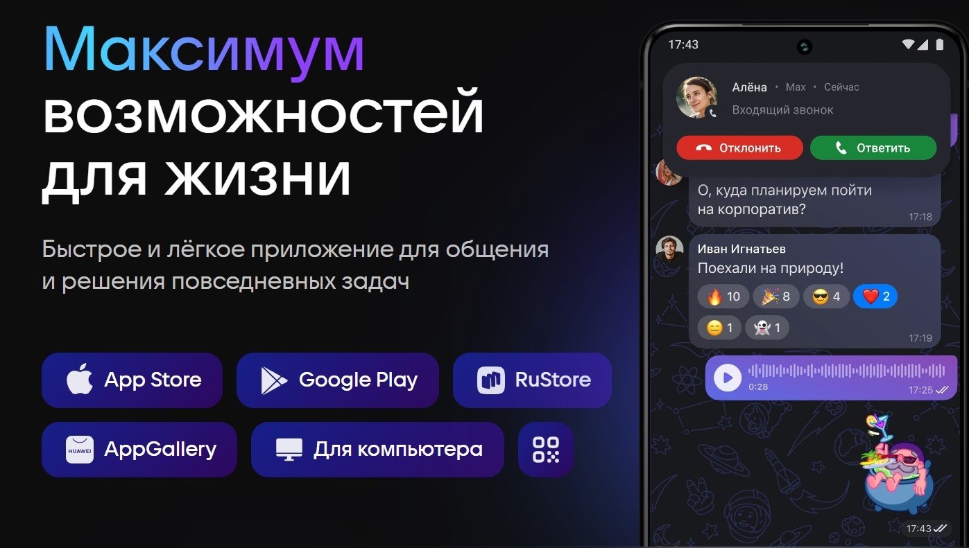 3. MAX доступен для iOS, Android, Windows, macOS. Мессенджер можно скачать бесплатно с официального сайта и магазинов приложений.