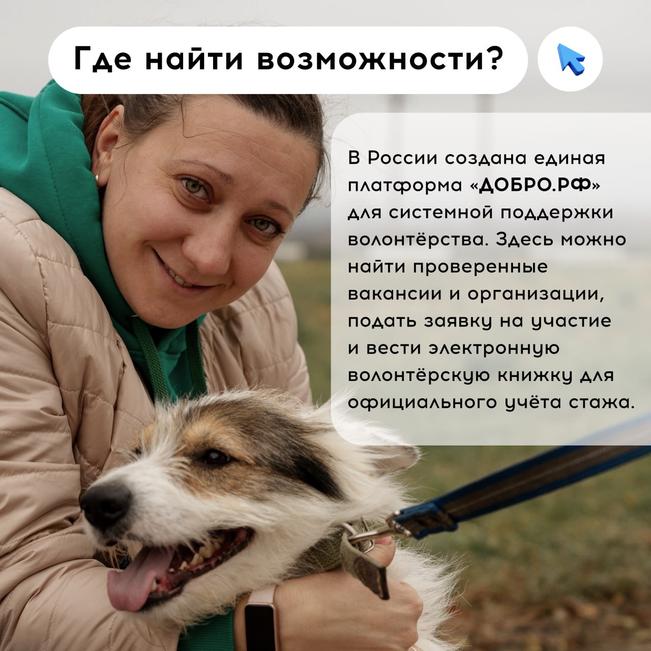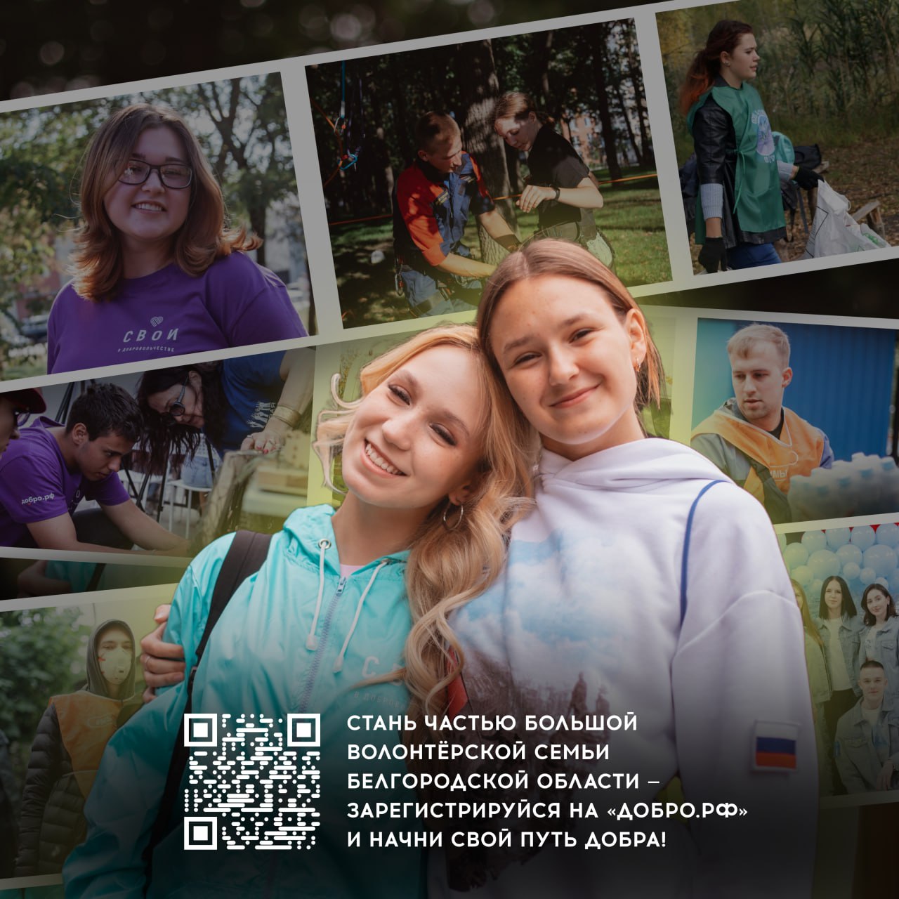 А о самом главном первом шаге тебе напоминает команда #СВОИвМедиа — зарегистрируйся на сайте «ДОБРО.РФ», который объединяет сообщество добровольцев России!