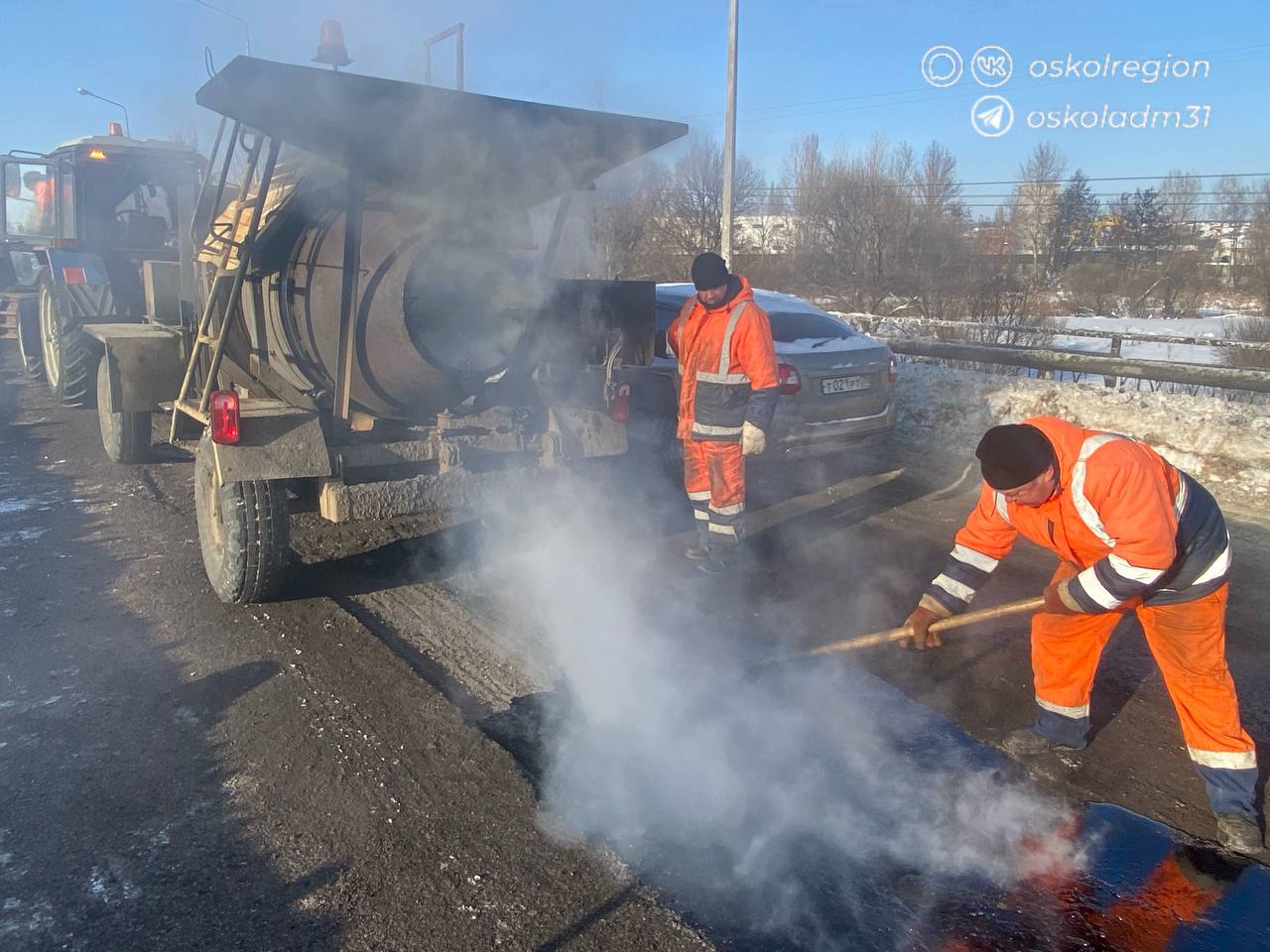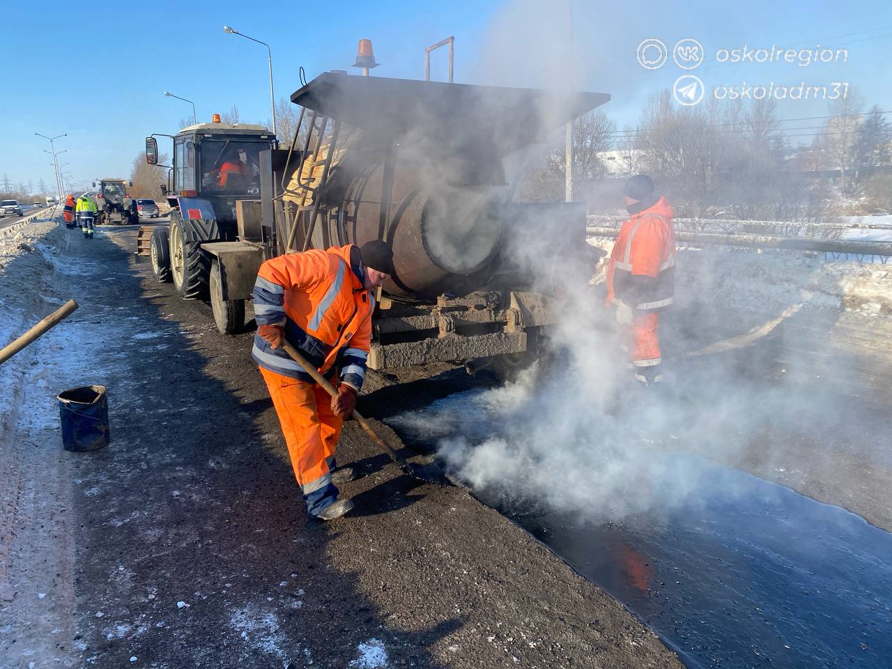 Сегодня специалисты начали работы по устранению дефектов дорожного полотна на магистрали «Западная объездная дорога» в районе моста через реку Осколец.