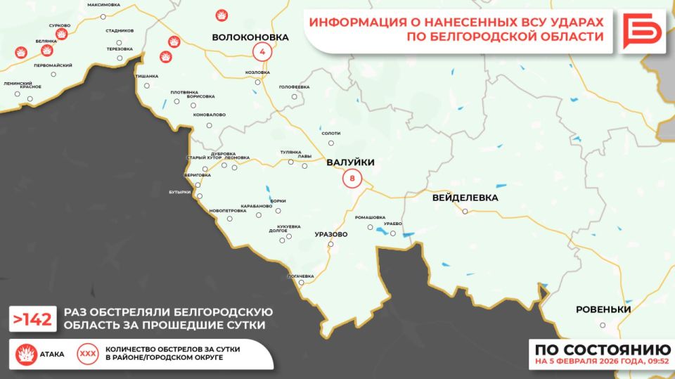 За прошедшие сутки ВСУ обстреляли Белгородскую область не менее 142 раз