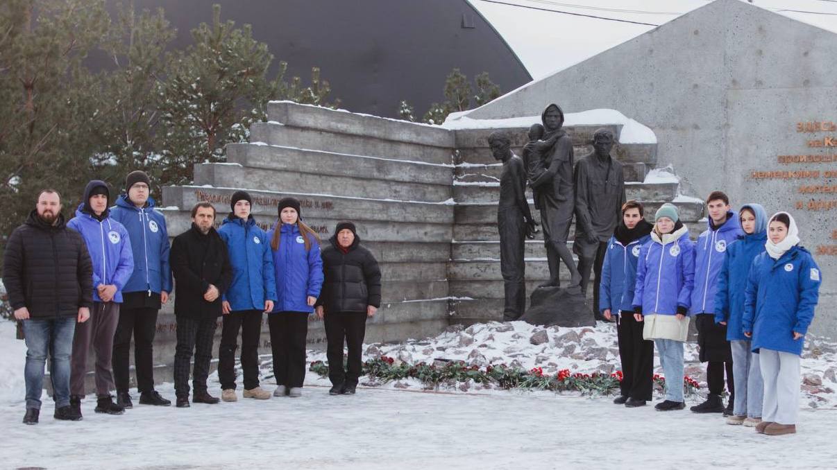 В этот день «Волонтёры Победы» возложили цветы к мемориалу жертвам трагедии на Камышитовом заводе, чтобы почтить память тех, чьи жизни были оборваны в те страшные дни.