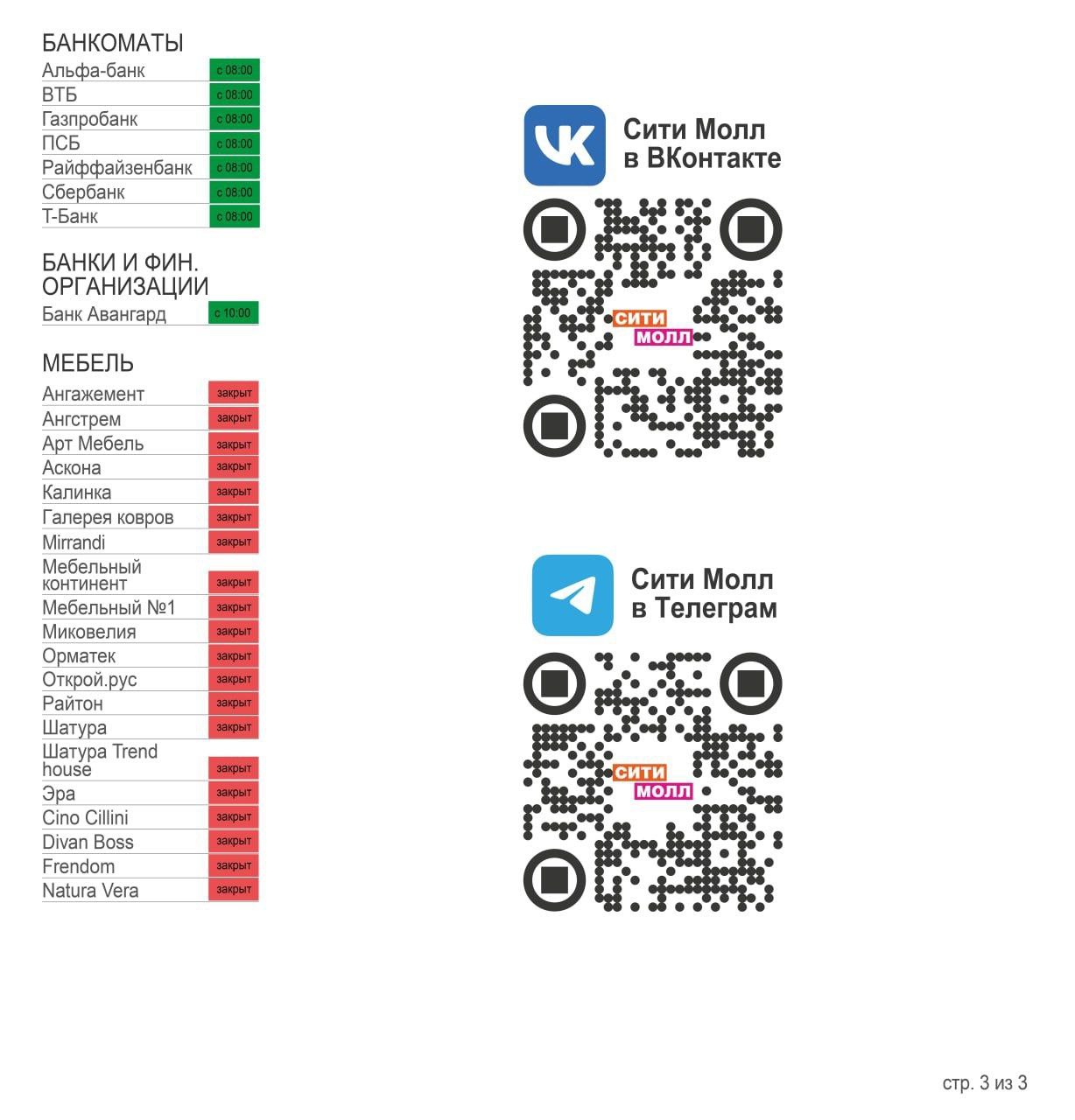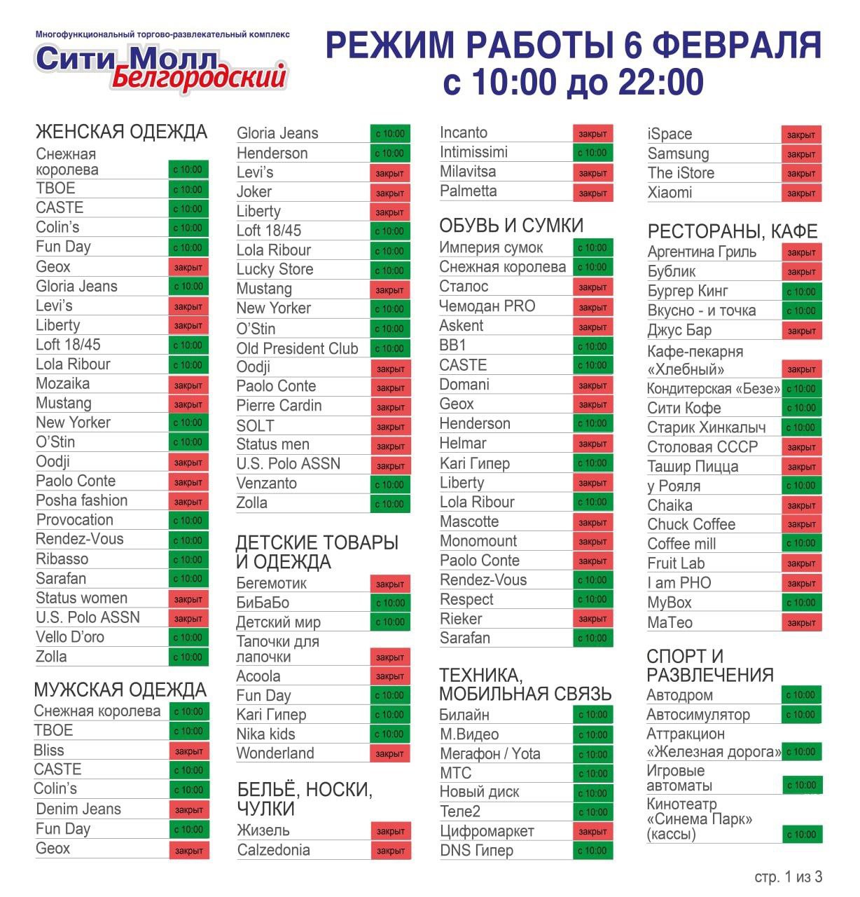 О работе крупных торговых центров сегодня.