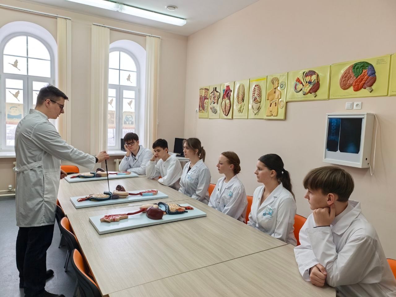 Врачхирург Виталий Бугаёв поделился с ребятами профессиональными знаниями и практическим опытом в ходе урока на тему: «Анатомофизиологические особенности строения желудочнокишечного тракта». Медицинская сестра Оксана Поливанова организовала практическую часть, в рамках которой ребята отработали навыки оказания первой помощи в смоделированных ситуациях, продемонстрировав полученные знания и умения.