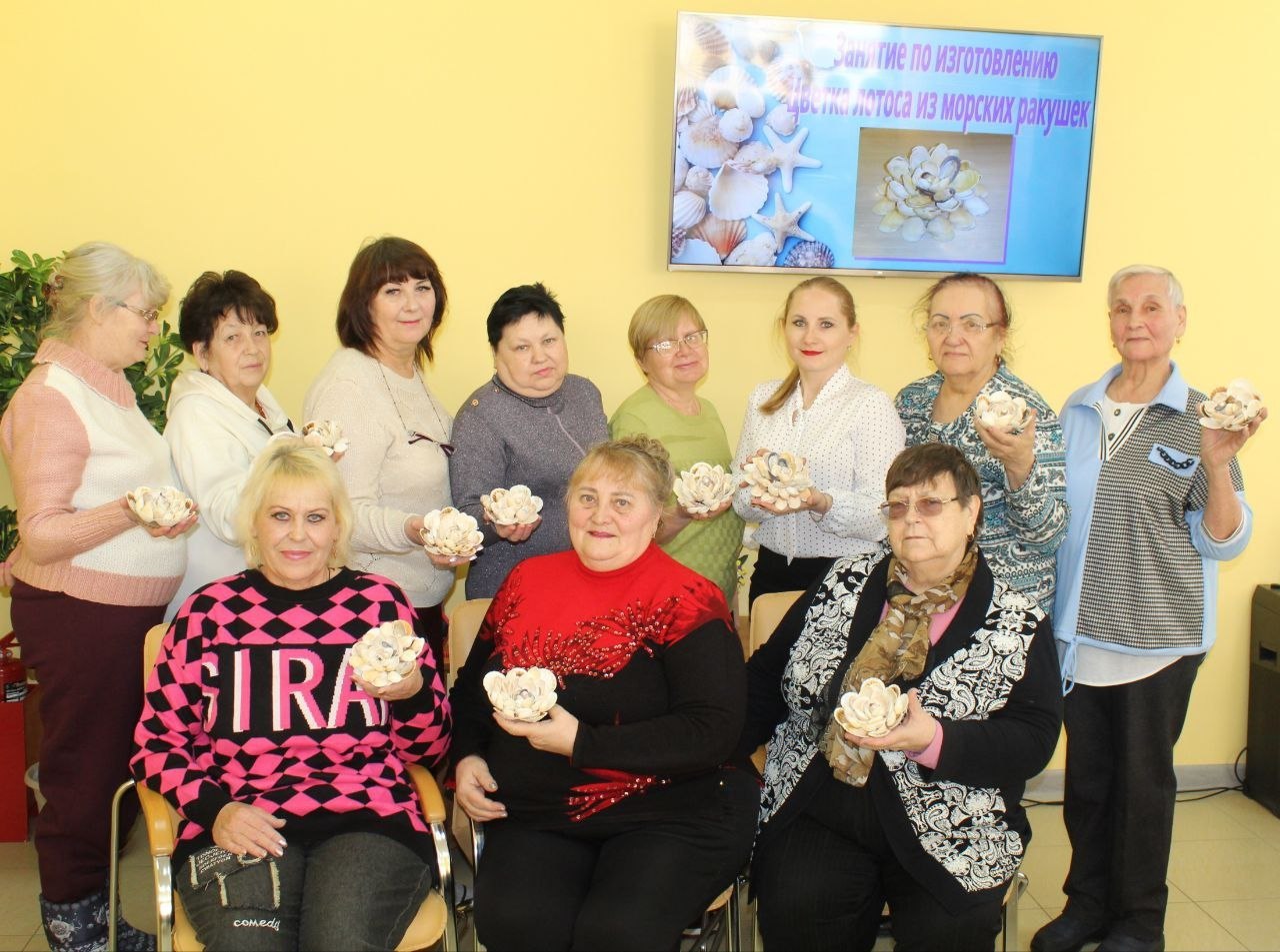 Получатели социальных услуг в рамках работы творческой мастерской «Рукодельница» изготовили цветки лотоса из морских ракушек.