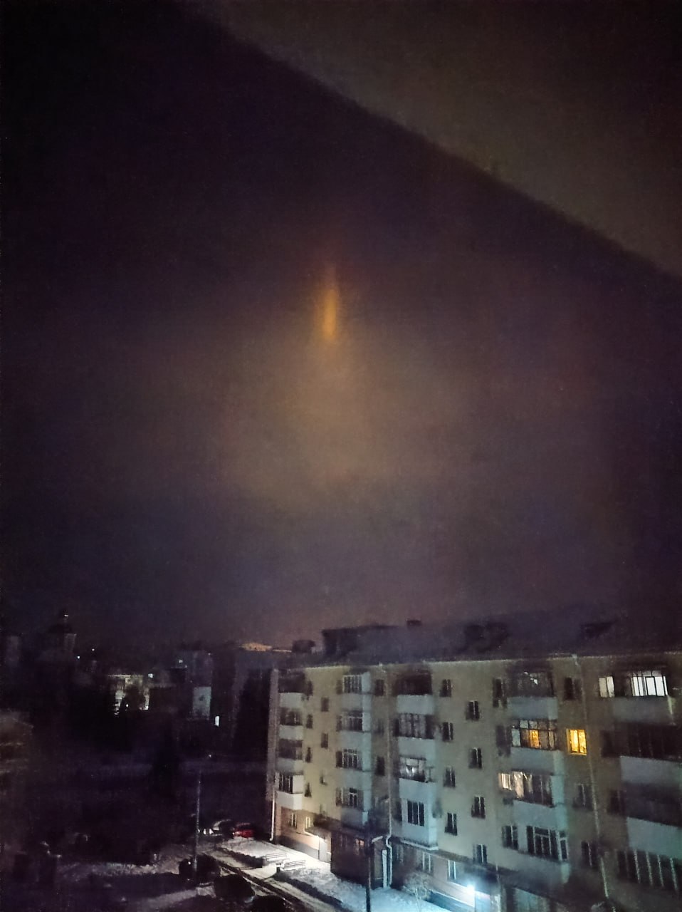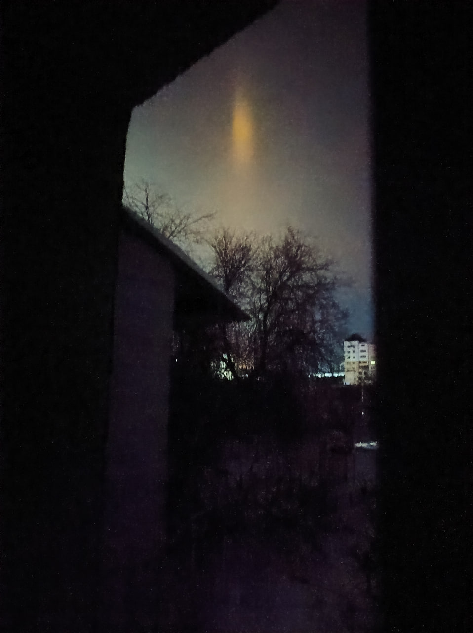 Ночью наша читательница заметила из своего окна световые столбы! Это, конечно, не северное сияние, но тоже выглядит красиво и завораживающе