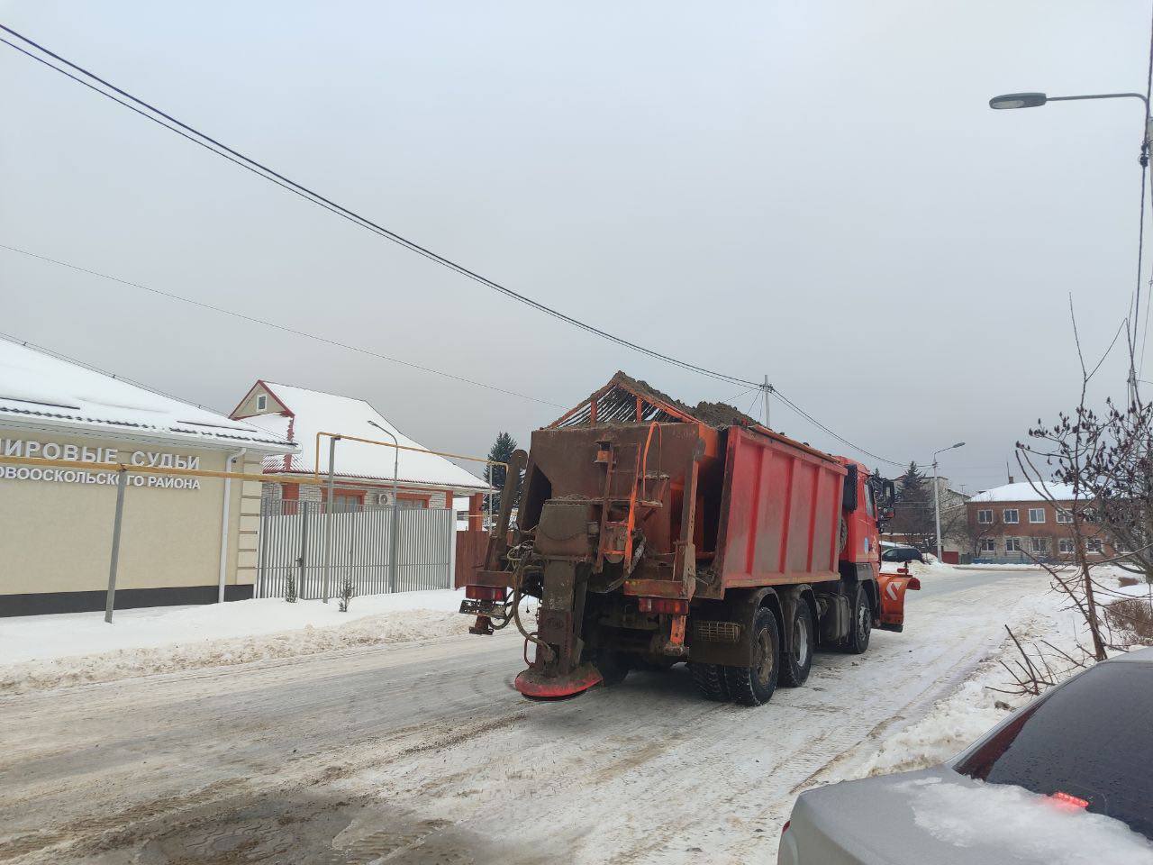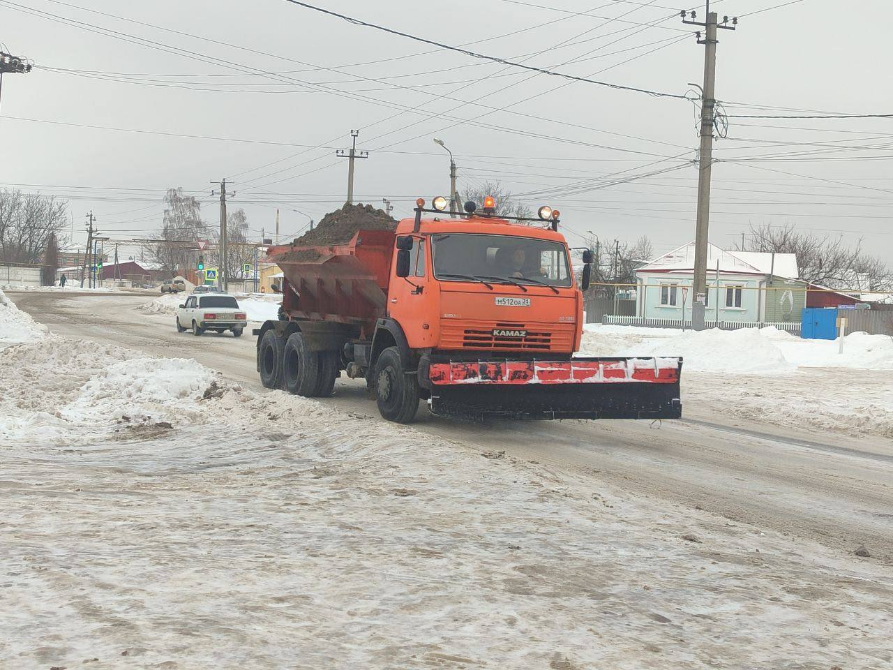 Для обеспечения безопасности дорожного движения и передвижения пешеходов специализированная техника и бригады занимаются обработкой проезжих частей и тротуаров противогололёдными материалами.