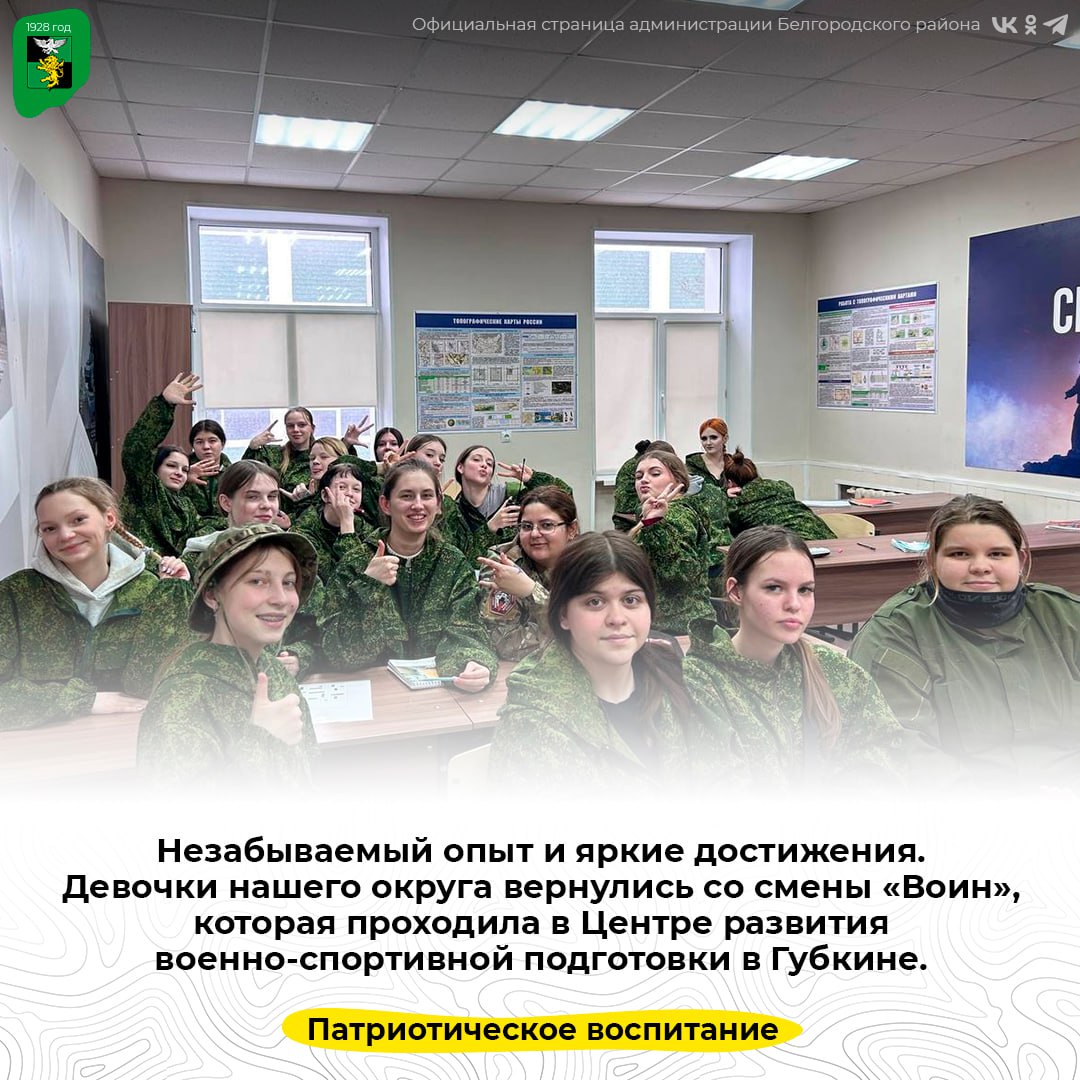 Девочки нашего округа вернулись со смены «Воин», которая проходила в Центре развития военно-спортивной подготовки в Губкине. Эти дни стали настоящей проверкой выносливости и захватывающим путешествием в мир новых знаний и навыков.