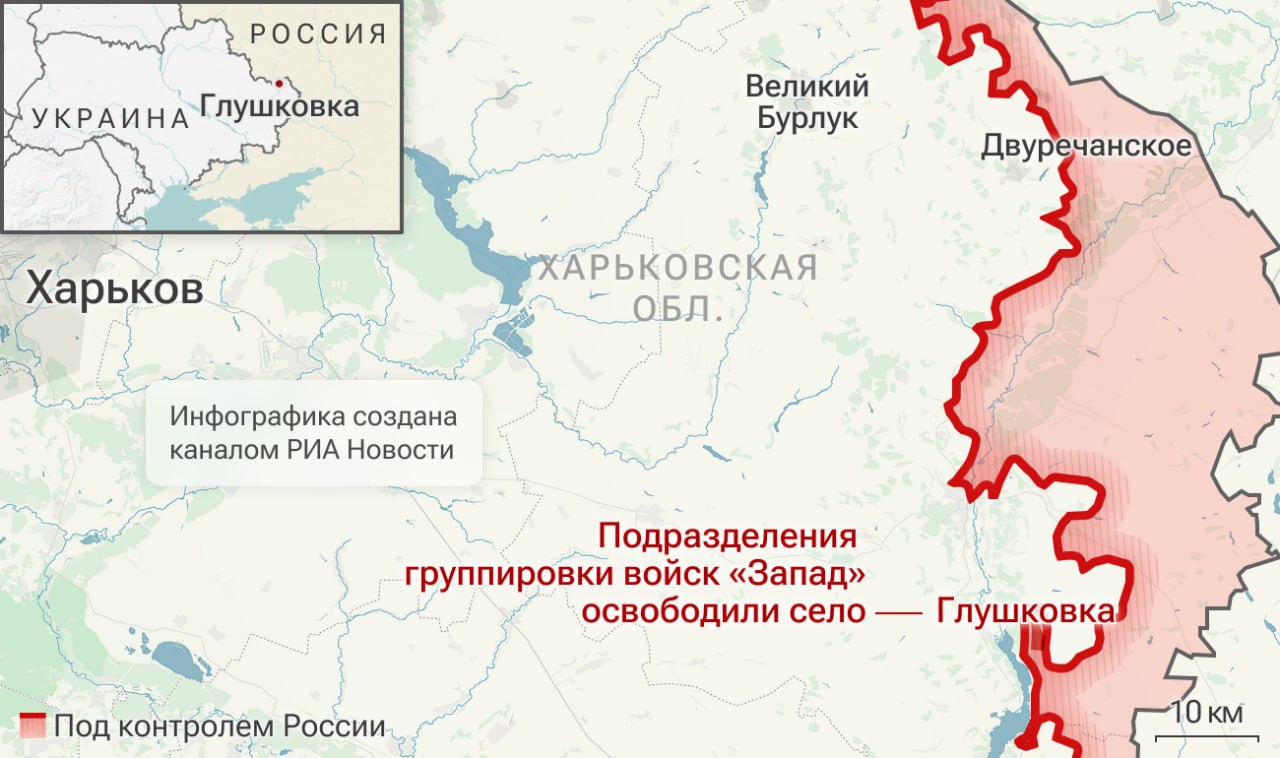 Армия России установила контроль над населенными пунктами Сидоровка в Сумской области и Глушковка в Харьковской области, сообщило Минобороны.