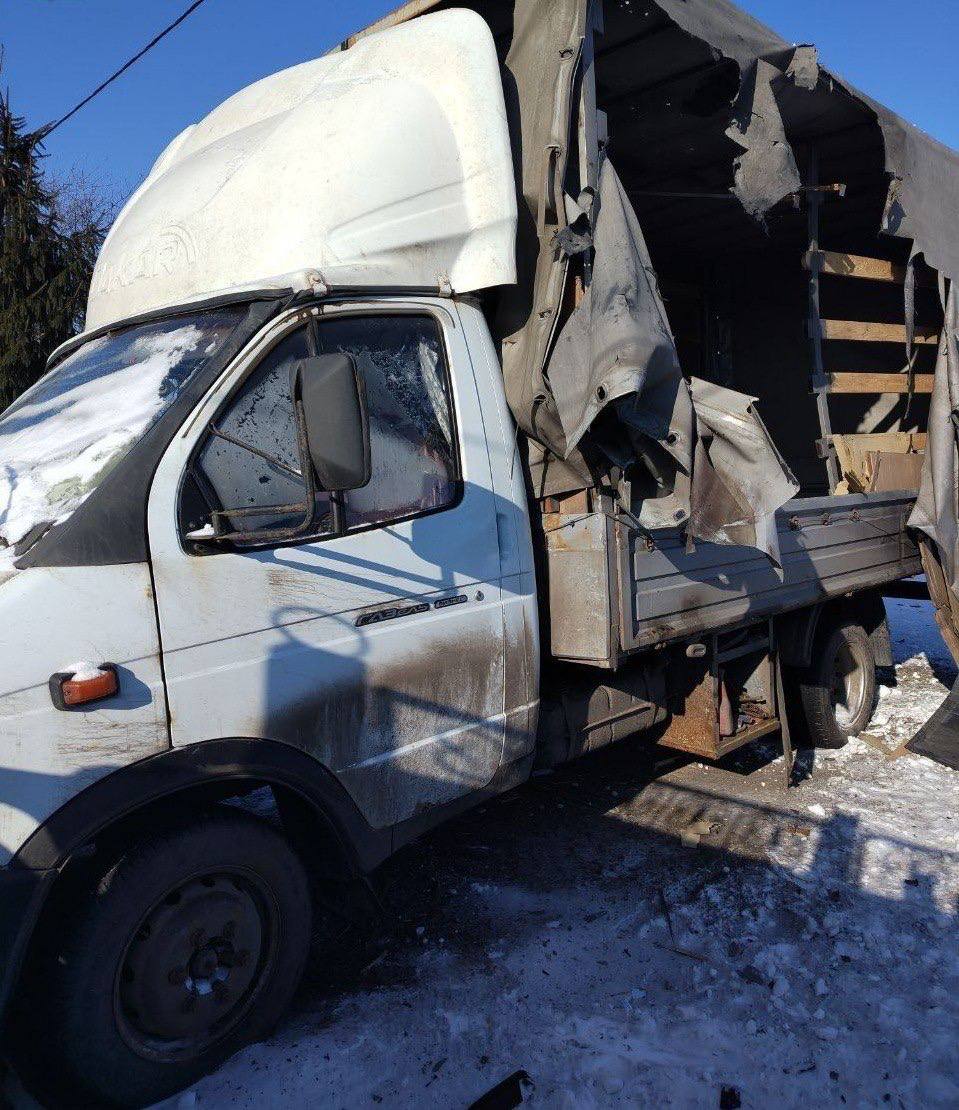 3 февраля, с. Нечаевка, Белгородская область. Удар FPV-дрона по гражданскому грузовому автомобилю.