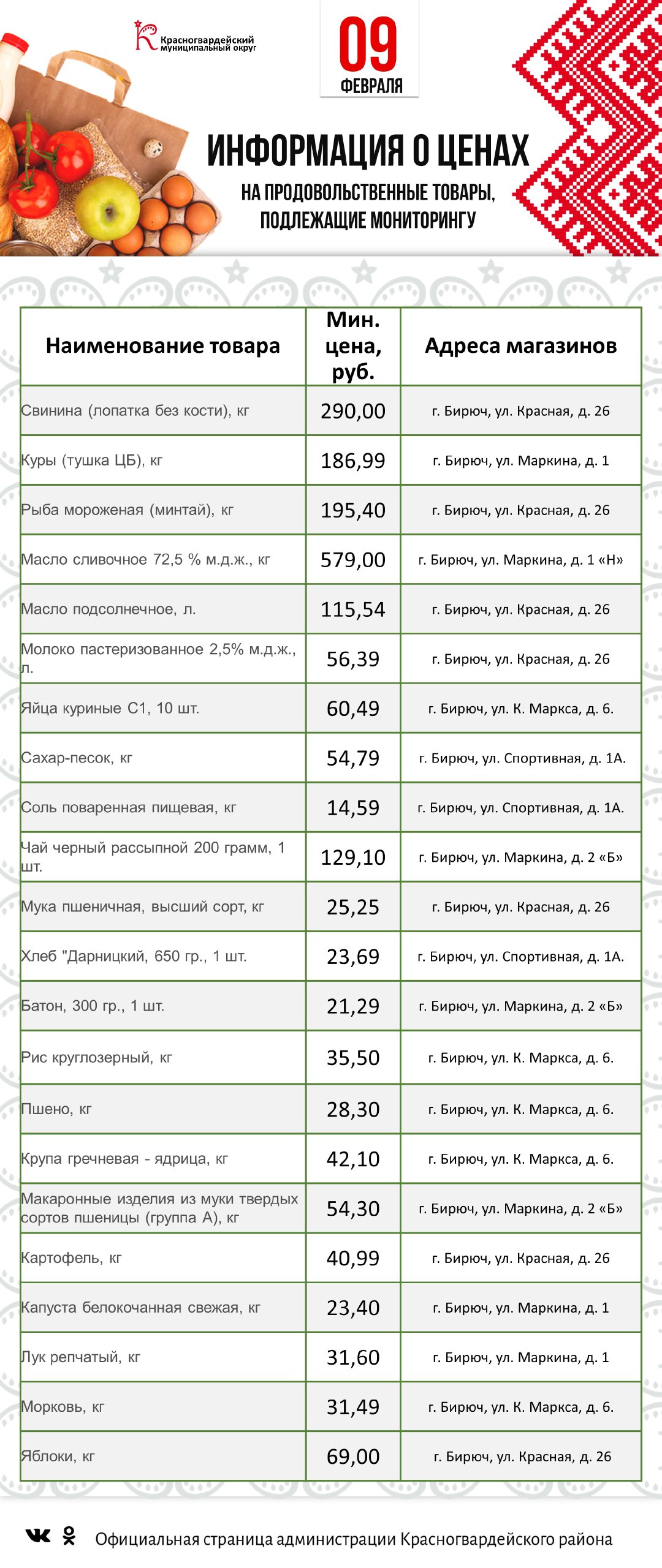 Представляем информацию о минимальных ценах набора социально значимых товаров первой необходимости по состоянию на 2 февраля