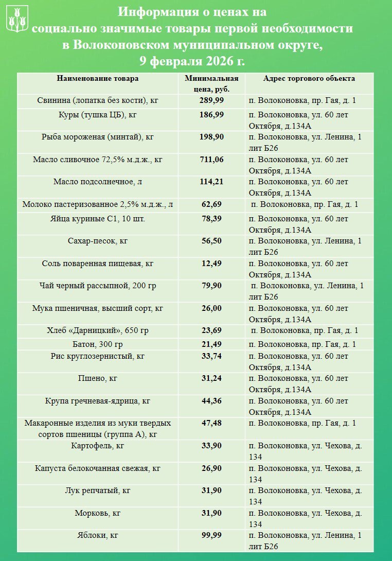 Уважаемые волоконовцы!. Информируем вас о ценах на продовольственные товары из базовой потребительской корзины, складывающихся в нашем муниципалитете на сегодняшний день