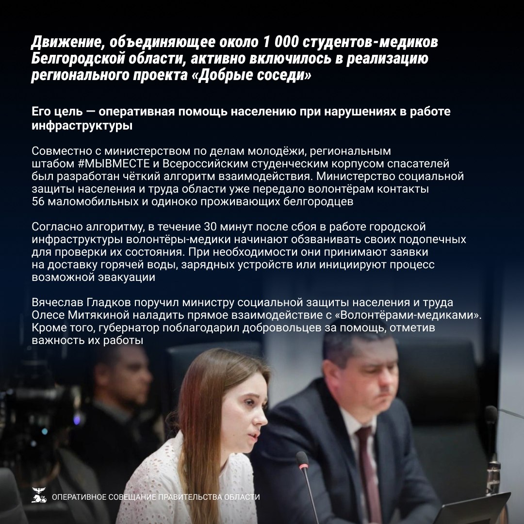 Гладков особо отметил: «Я глубоко благодарен каждому человеку, который, рискуя своей безопасностью, боролся за сохранение жизни и здоровья наших граждан».