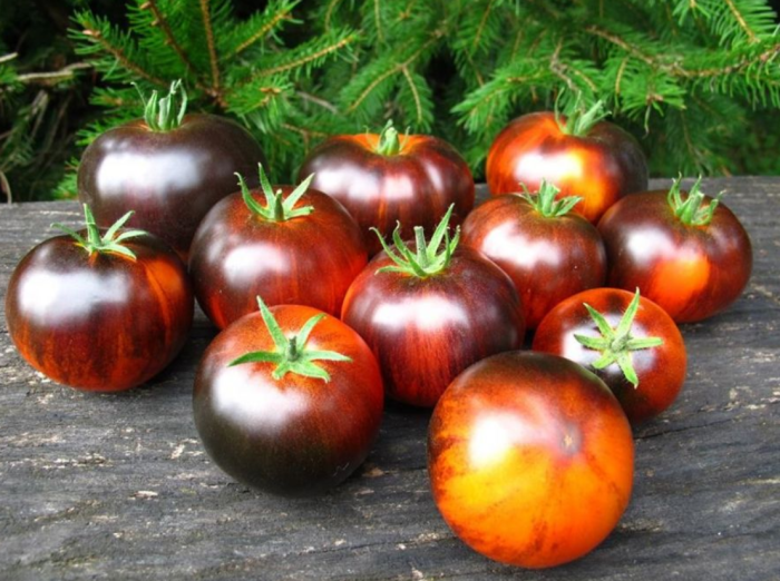Сорт принадлежит к категории антоциановых томатов, известен способностью накапливать природные пигменты. Они придают плодам темный оттенок, однако характерный окрас проявляется не на всем плоде, а только на плечиках. Это темное «загар» добавляет экзотичности, но его насыщенность зависит от условий освещения в теплице.