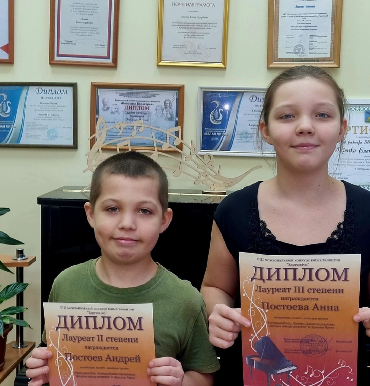Анна Постоева была удостоена звания Лауреата II степени, Милана Кравченко и Андрей Постоев – III степени.