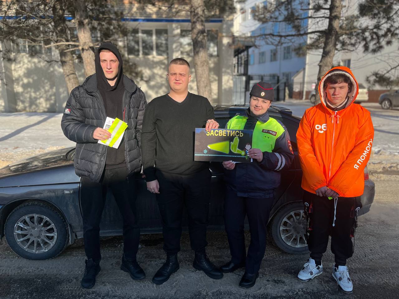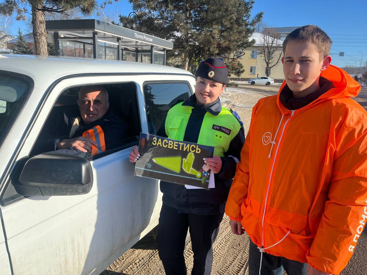 Совместно с инспекторами ГИБДД наши волонтёры напомнили землякам о простых, но жизненно важных правилах поведения на дороге. Особый акцент был сделан на использование световозвращающих элементов.