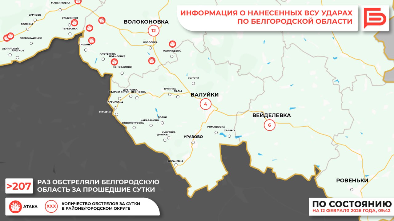 За прошедшие сутки ВСУ обстреляли Белгородскую область не менее 207 раз