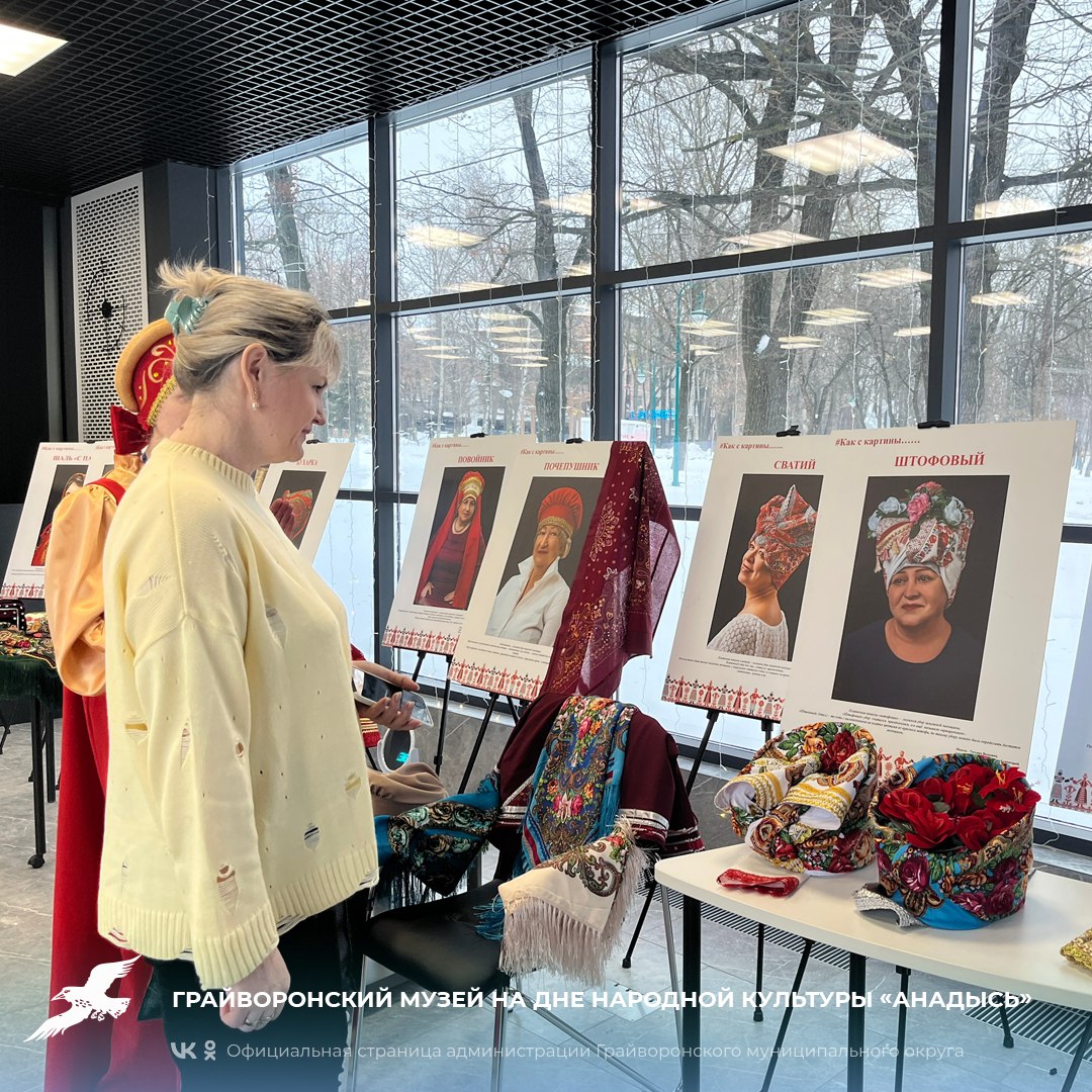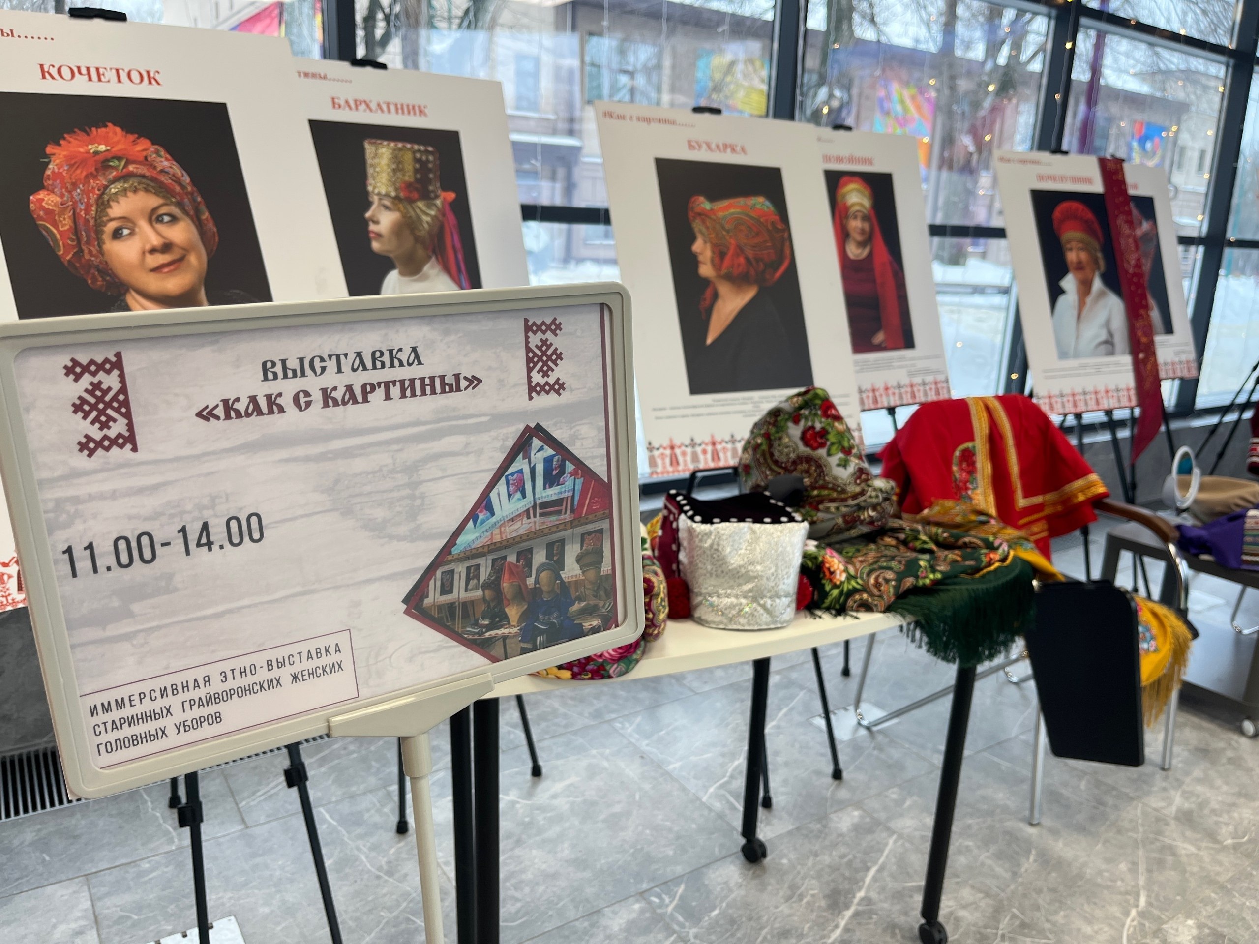 В рамках Дня народной культуры, прошедшего в «Креатив-Тауне», историко-краеведческий музей представил гостям выставку «Как с картины». Коллекция погрузила зрителей в увлекательное путешествие по истории традиционных женских головных уборов Грайворонского края.