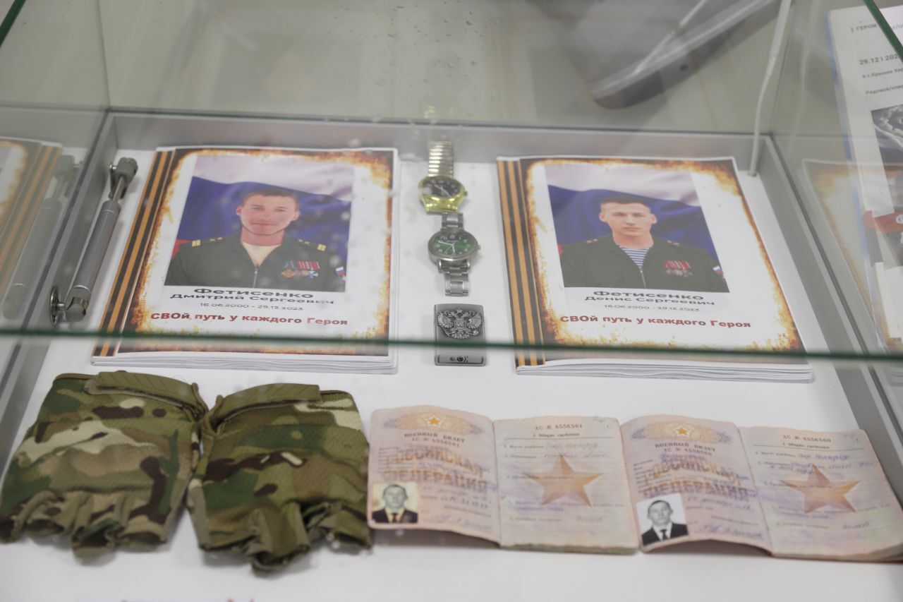 Первыми экспонатами стали личные вещи, награды и фотографии братьев Фетисенко и Виталия Кравченко, которые бережно сохранили и передали родственники героев. Эти предметы станут основой для военно-патриотического воспитания молодёжи на примере высокого патриотизма парней.
