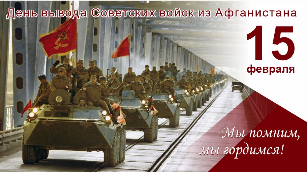 37 лет назад, 15 февраля 1989 года, завершился вывод советских войск из Афганистана. В этот день мы отдаем дань уважения и памяти гражданам нашей страны, исполнявшим свой воинский долг за пределами Отечества.