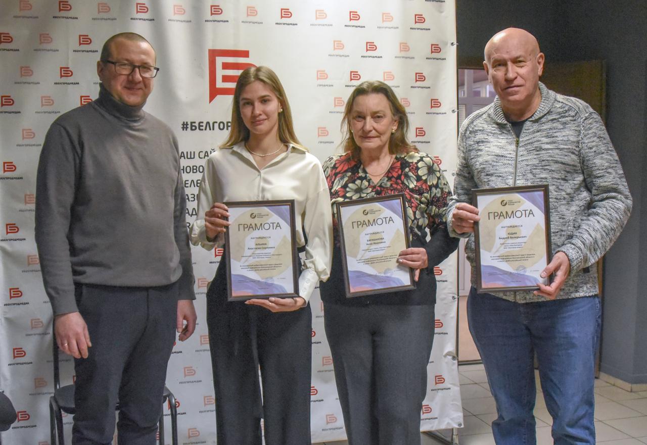 Грамотами за подписью председателя Владимира Соловьёва профессиональное сообщество страны отметило журналистов газеты «Наш Белгород» Андрея Юдина и Анну Барабанову, а также шеф-редактора редакции информационного вещания Анастасию Ильину.