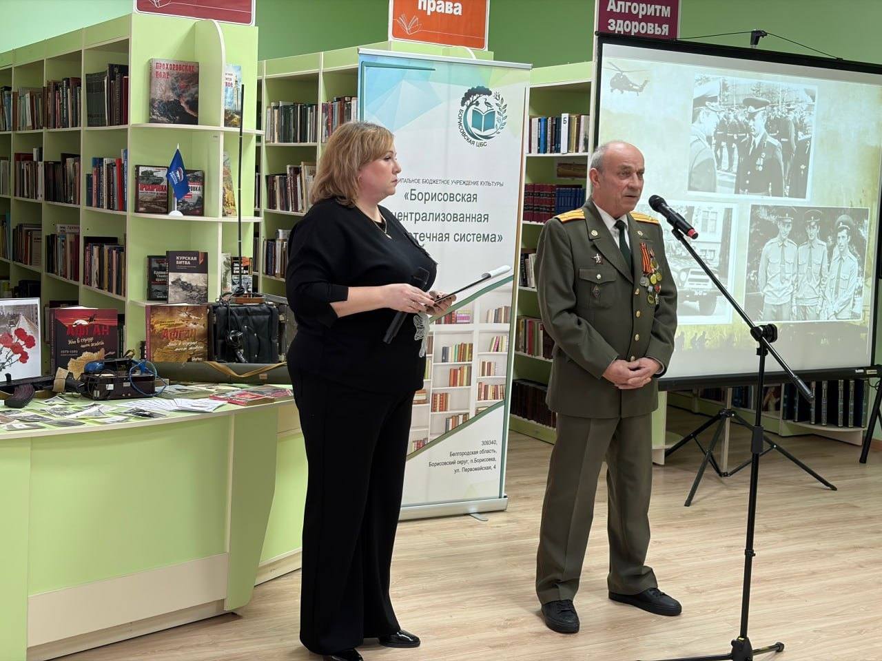 В Борисовском округе местные жители в формате живого диалога смогли пообщаться с ветераном боевых действий, подполковником Николаем Сергеевичем Бураковым. Из уст живого свидетеля войны в Афганистане присутствующие услышали рассказы о боевых операциях, солдатской верности и воинской присяге.
