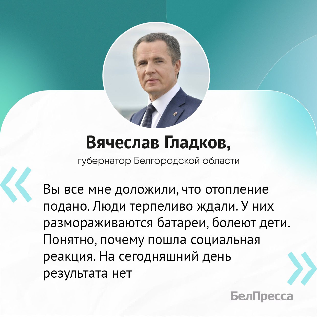 Вячеслав Гладков потребовал ликвидировать все аварийные ситуации, связанные с отоплением, до вечера