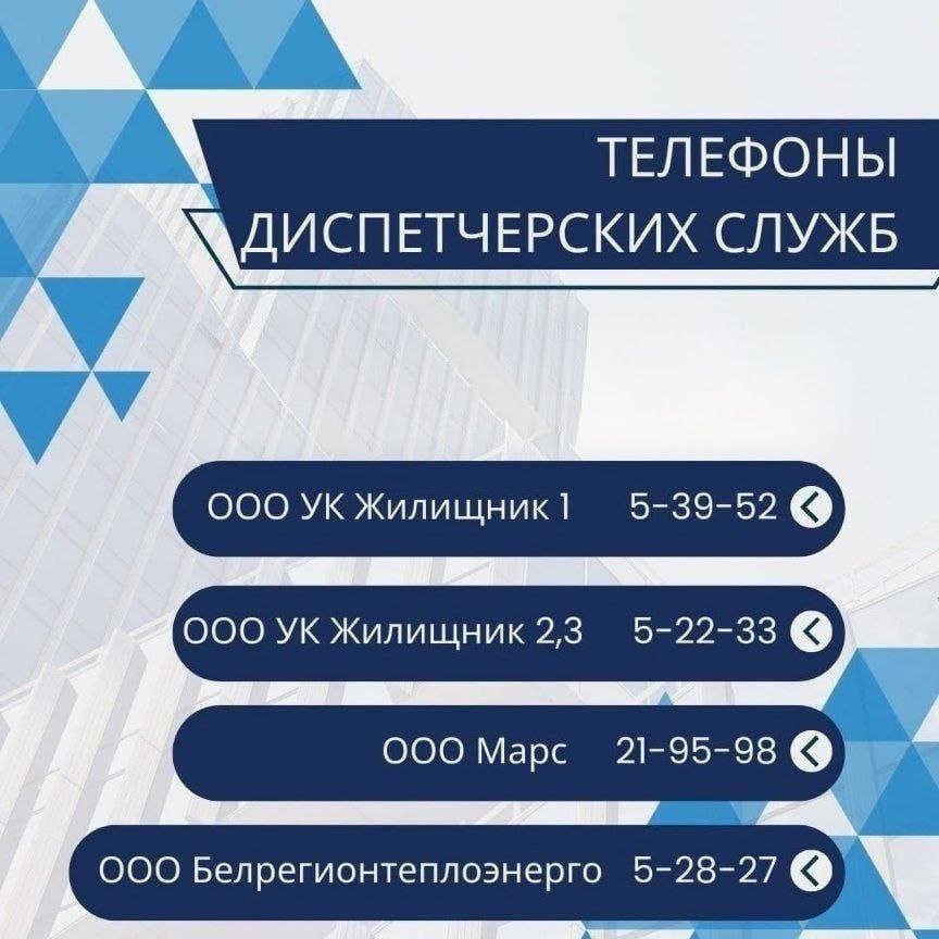 В случае возникновения проблем с системой отопления по вашему адресу - Вы можете сообщить о них в диспетчерскую службу теплосетей: 8 (47244) 5-28-27 или Управляющей компании обслуживающей Ваш многоквартирный дом.