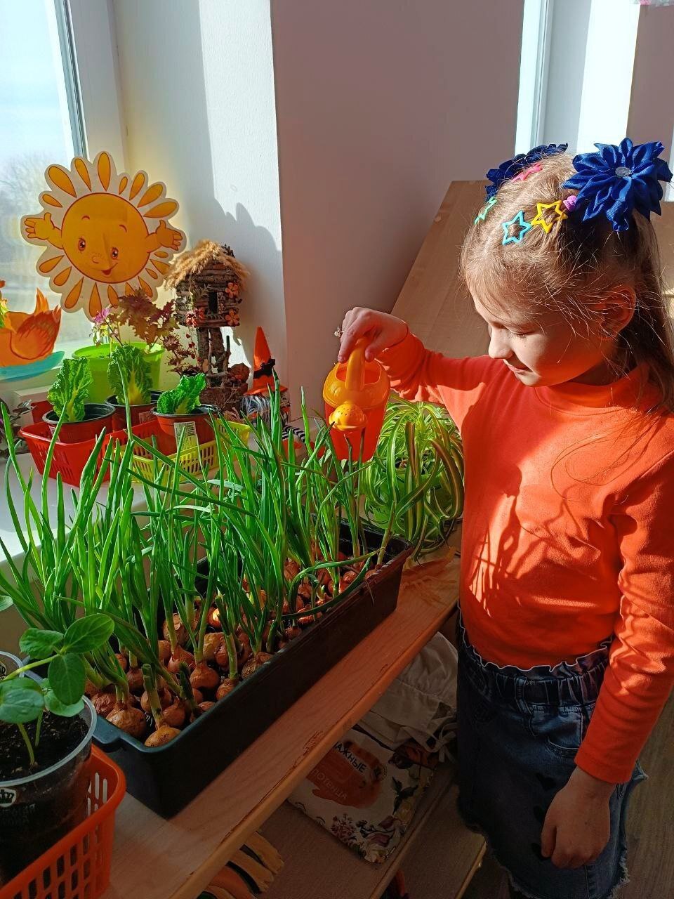 Юные экологи активно вовлечены в разнообразную деятельность: ребята не только ухаживают за комнатными растениями, но и создают мини-огороды на подоконниках. Здесь они с восторгом наблюдают весь цикл жизни растений: от посадки лука, семян рукколы, укропа, редиса и огурцов до сбора первого урожая. Выращенную собственными руками полезную зелень малыши едят на обед и укрепляют иммунитет. Кроме того, мальчишки и девчонки выращивают цветы в горшочках, чтобы потом подарить их своим мамам.