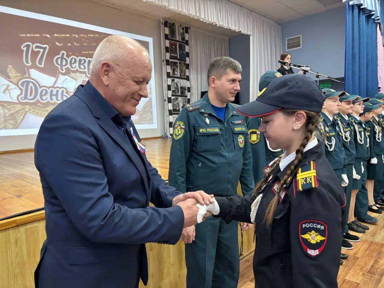 В Новооскольской СОШ с УИОП отметили Всероссийский День кадета. С поздравительным словом выступил депутат Белгородской областной Думы, член общественной организации «Отцы России» Михаил Ананичев.