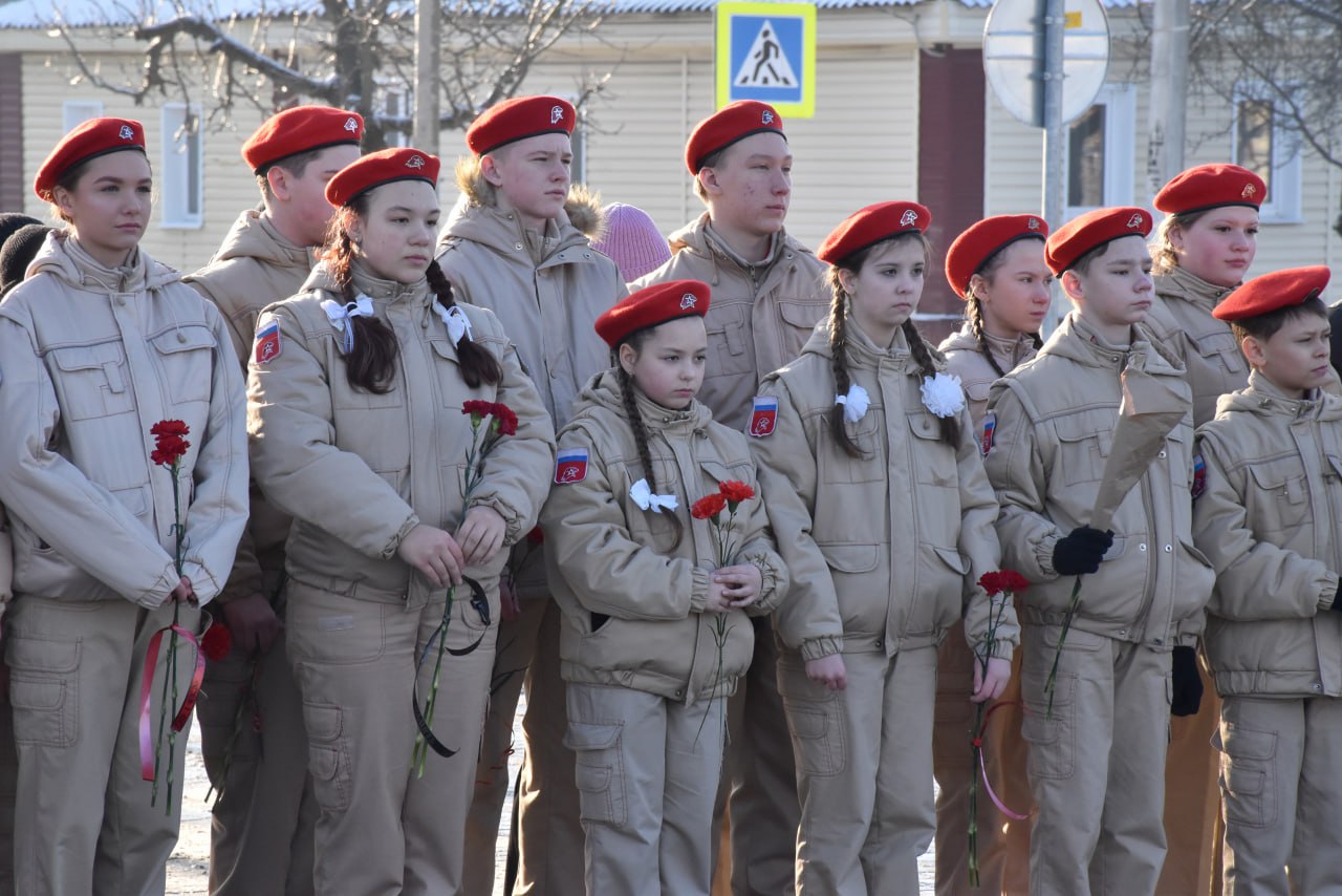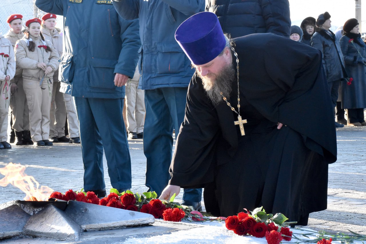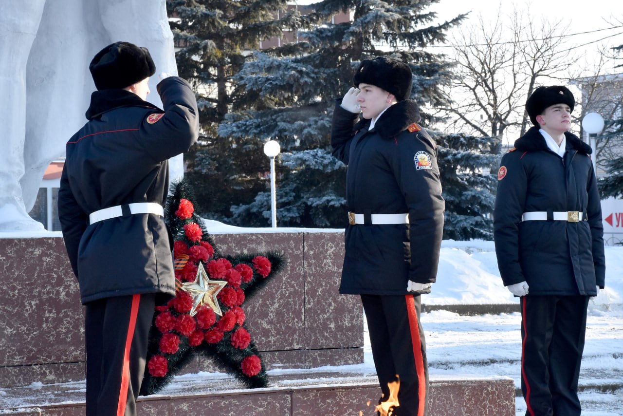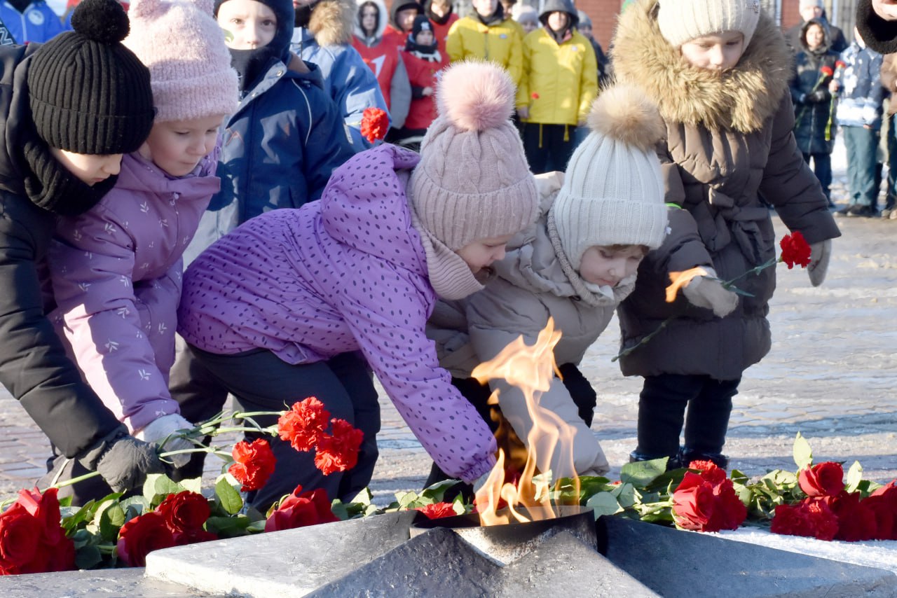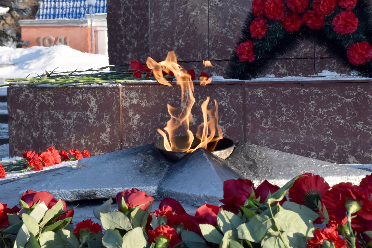 В преддверии Дня защитника Отечества вместе с жителями, представителями трудовых коллективов и силовых ведомств, депутатами, общественниками, юнармейцами, кадетами и волонтерами возложили цветы к Вечному огню. Минутой молчания почтили память погибших воинов, отдавших жизнь за Родину.