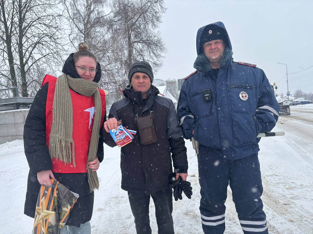Краснояружские госавтоинспекторы вместе с волонтерами организовали праздничную акцию, приуроченную ко Дню защитника Отечества