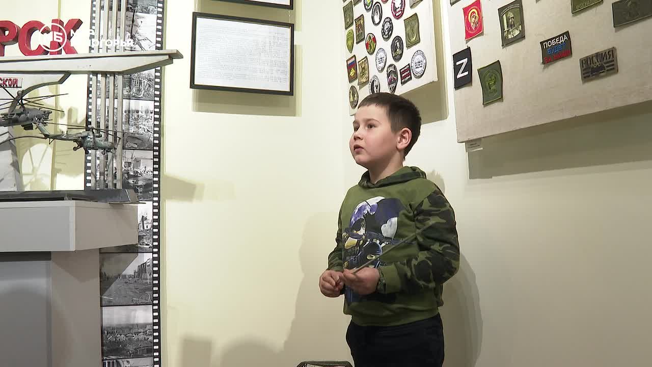 В экспозиции– техника, стелы прифронтовых городов и работы из осколков, осколки, прилетали в Белгород и прямо в мастерскую автора.