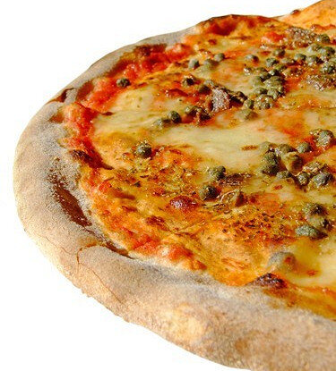 После подготовки пиццы дать ей постоять 15 минут. Затем посыпать каперсами, сбрызнуть оливковым маслом и отправить в заранее разогретую до 225°C духовку. Выпекать от 30 до 40 минут, пока пицца не подрумянится. Не забудьте нарезать листья зелёного салата и украсить ими готовое блюдо перед подачей.