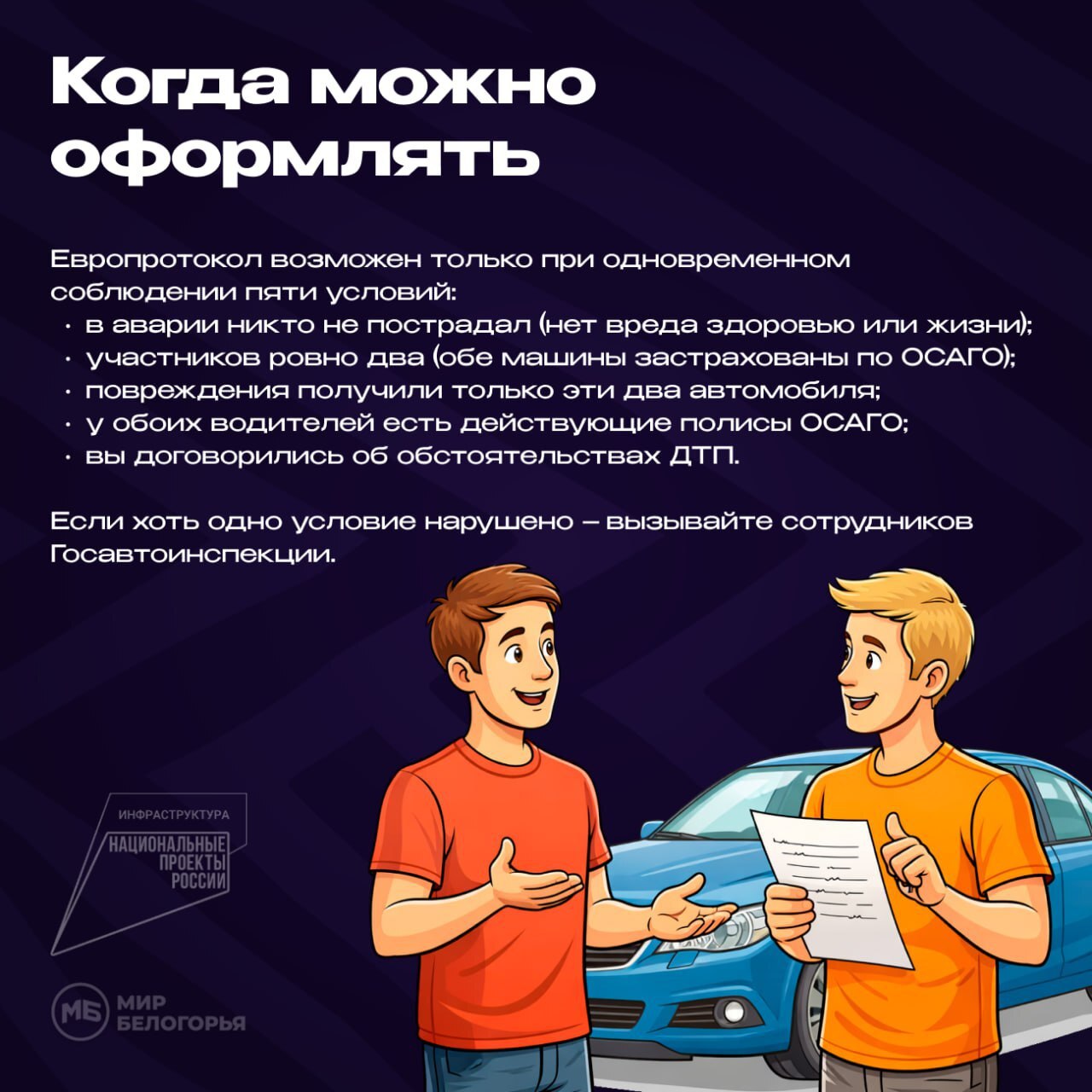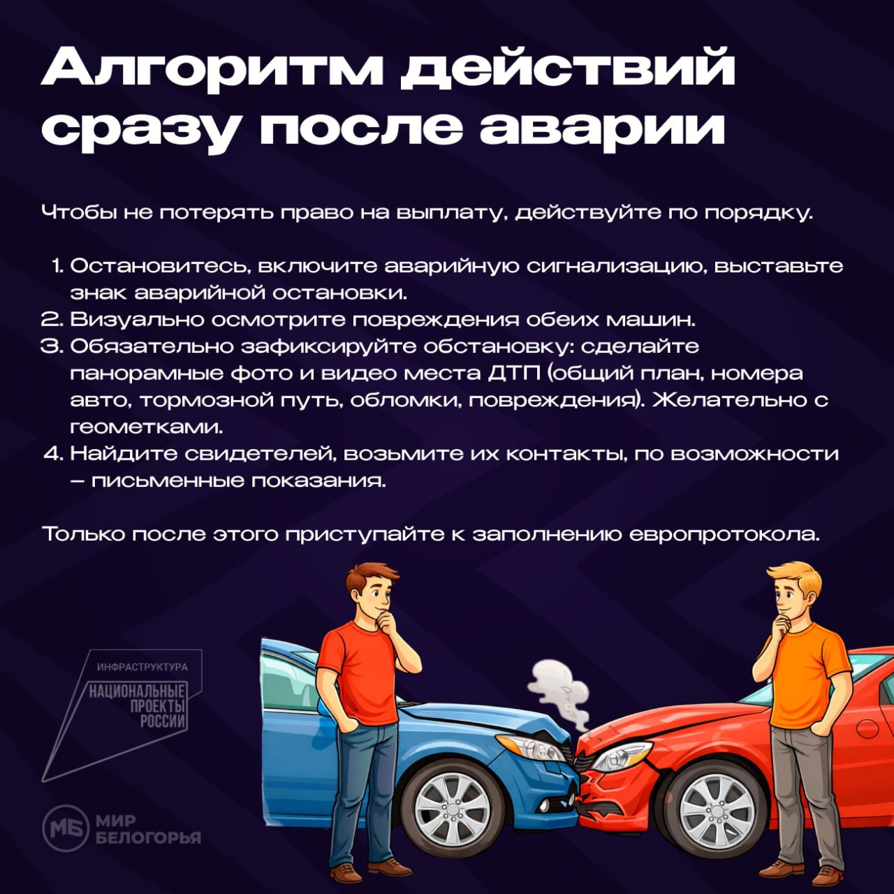 Мир Белогорья вместе с Госавтоинспекцией разработали карточки, где рассказывается, как это сделать правильно, чтобы получить страховые выплаты.