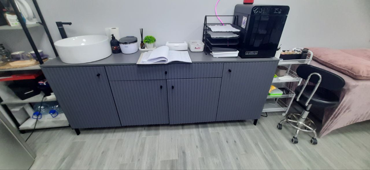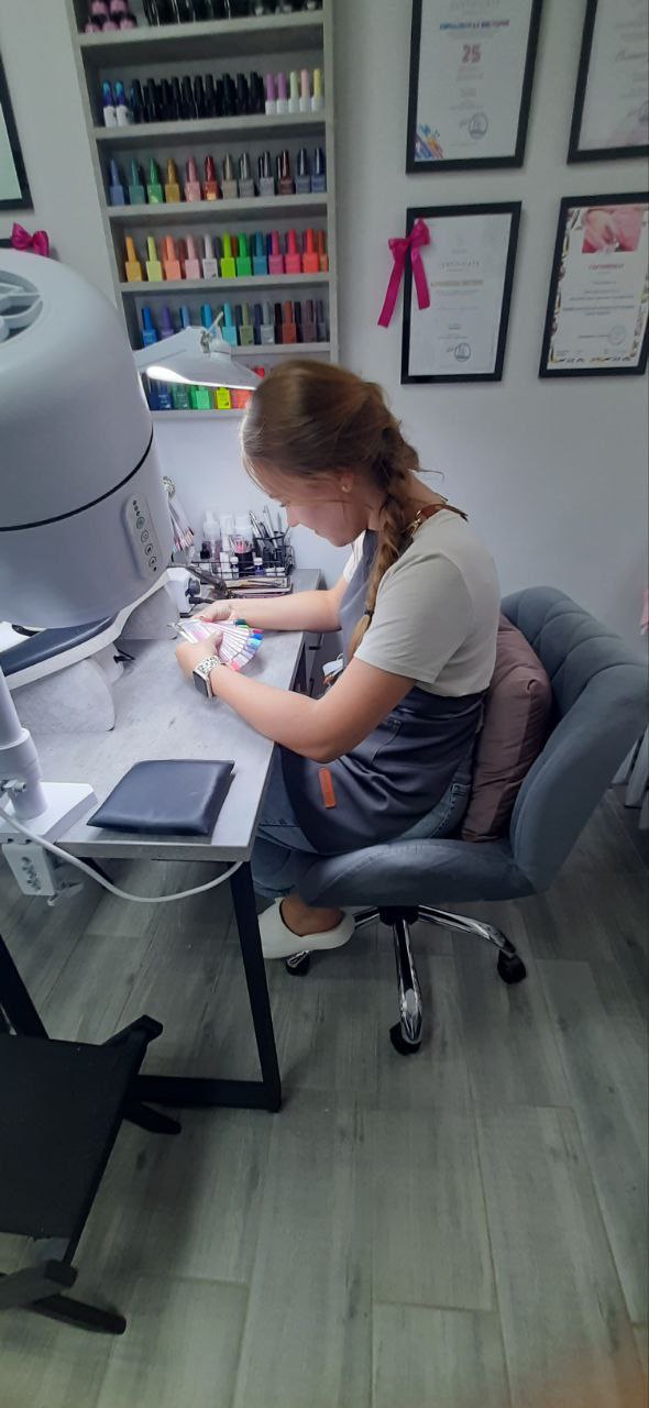 Получив выплату Виктория приобрела необходимое оборудование и материалы: аппарат для маникюра и педикюра, лампы, рабочую форму, инструменты, мебель, вытяжку, уз-мойку и расходные материалы.