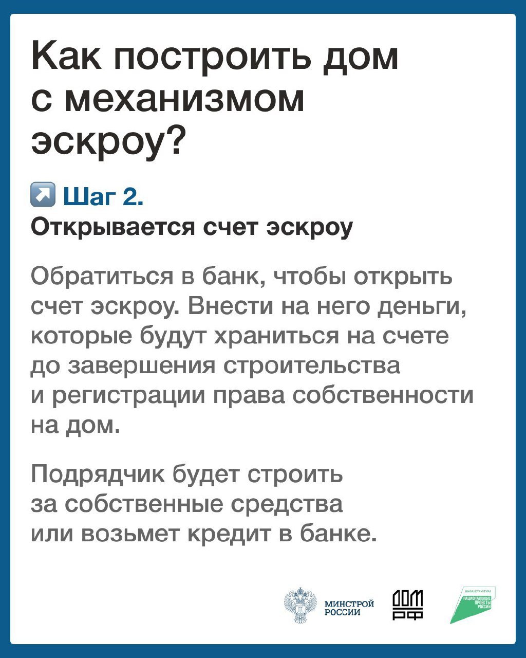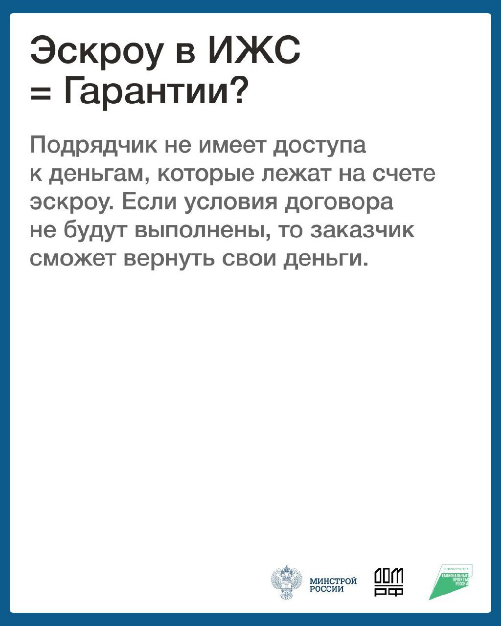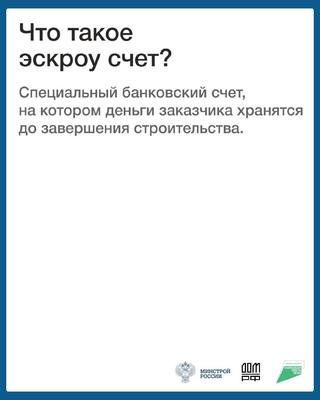 В карточках Минстроя РФ можно узнать больше о преимуществах и особенностях использования счетов эскроу.