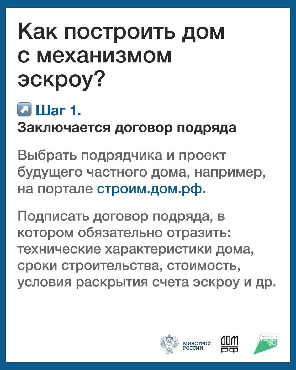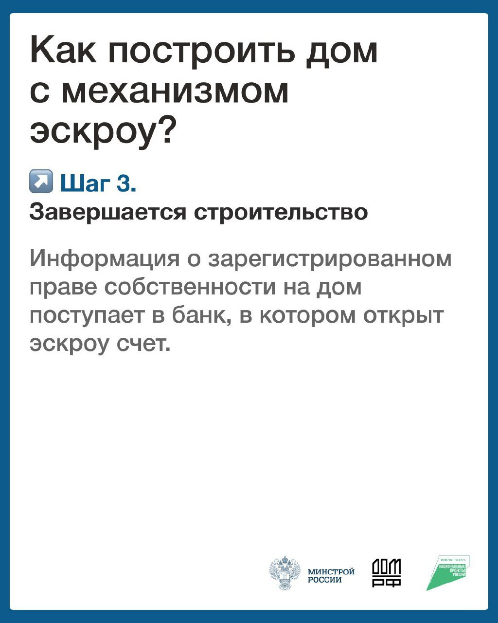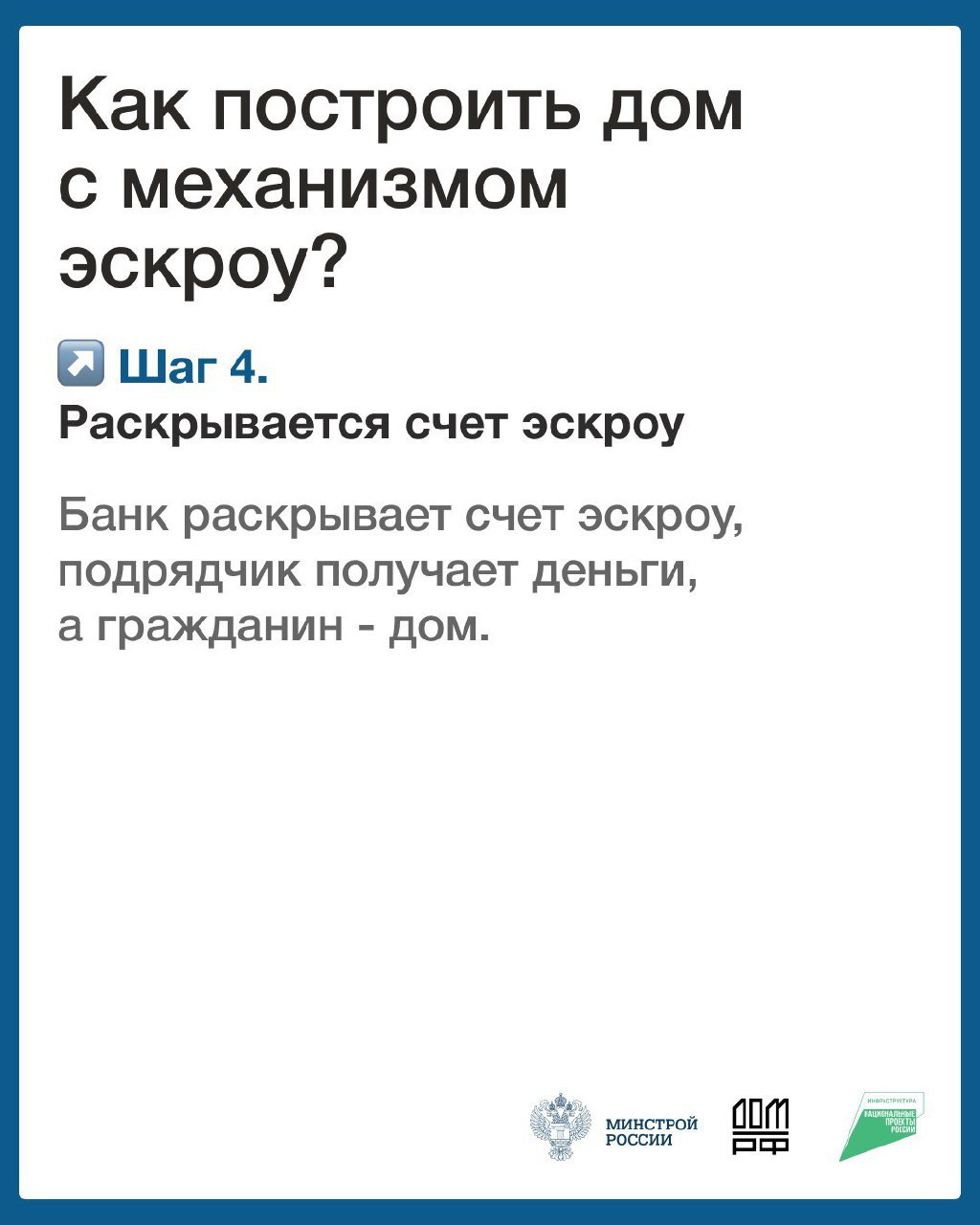 В карточках Минстроя РФ можно узнать больше о преимуществах и особенностях использования счетов эскроу.