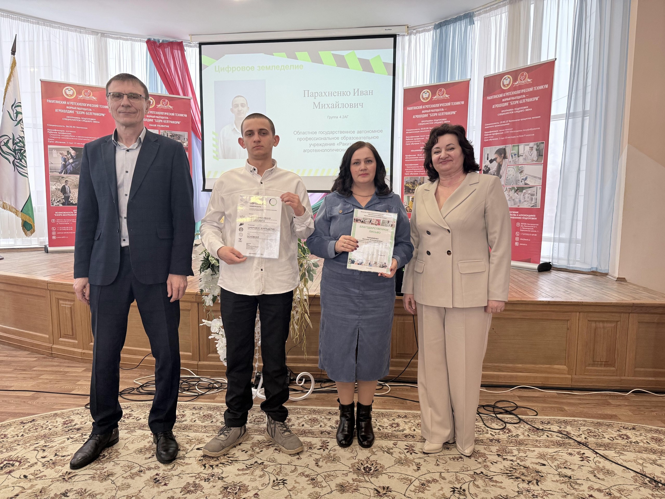 Наши студенты стали его призёрами в различных компетенциях. Их поздравили заместитель главы Ракитянского округа – начальник управления по развитию сельских территорий и АПК Геннадий Псарёв, директор техникума Наталья Новикова и начальник отдела по персоналу агрохолдинга «БЭЗРК-Белгранкорм», якорного предприятия техникума, Анатолий Кузнецов.