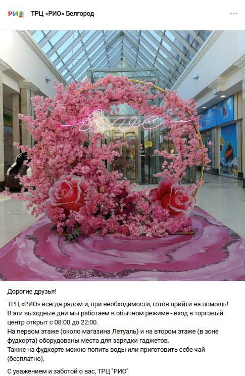Ещё два торговых центра: «СитиМолл» и «РИО» функционируют в обычном режиме.