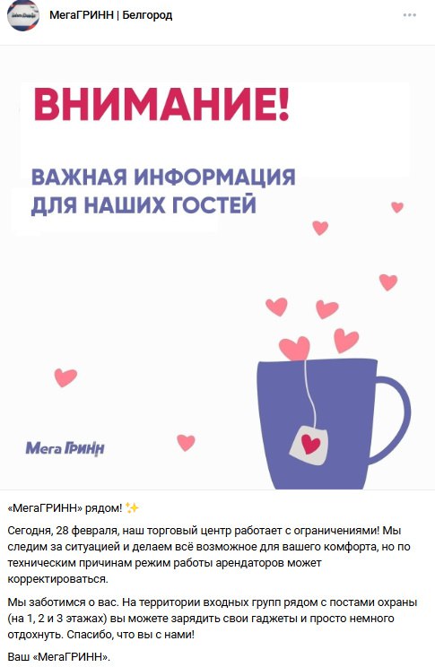 Сегодня ТРЦ «МегаГринн» будет работать с ограничениями