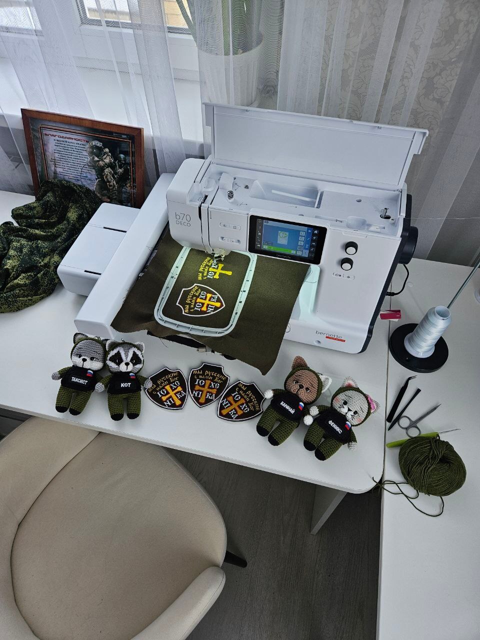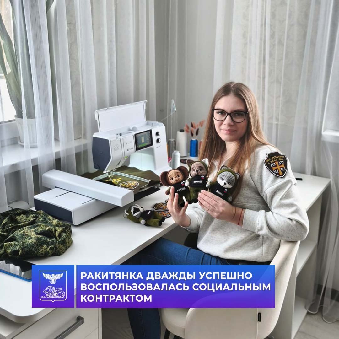 Мария не стала останавливаться на достигнутом и в 2025 году снова заключила социальный контракт. В этот раз она решила заняться машинной вышивкой и созданием вязаных игрушек. На выделенные государством деньги ракитянка приобрела вышивальную машину, стол, стул, пряжу и ткани. Созданные ею изделия уже приносят радость своим владельцам.