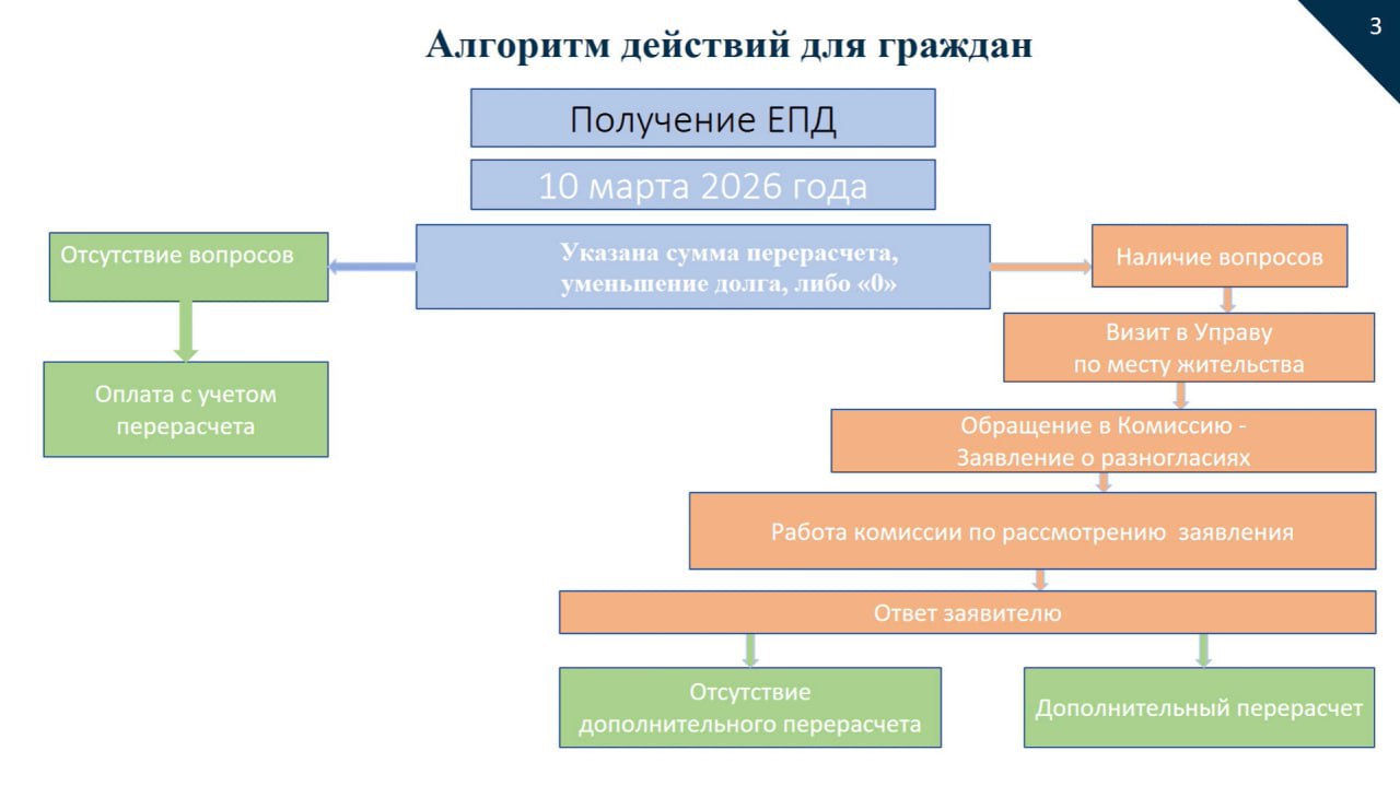 Специально обращаться за перерасчётом не нужно, акцентировал он внимание – он уже в квитанциях. Если после этого останутся вопросы, можно обратиться в комиссию. Она начнёт работать с 11 марта.
