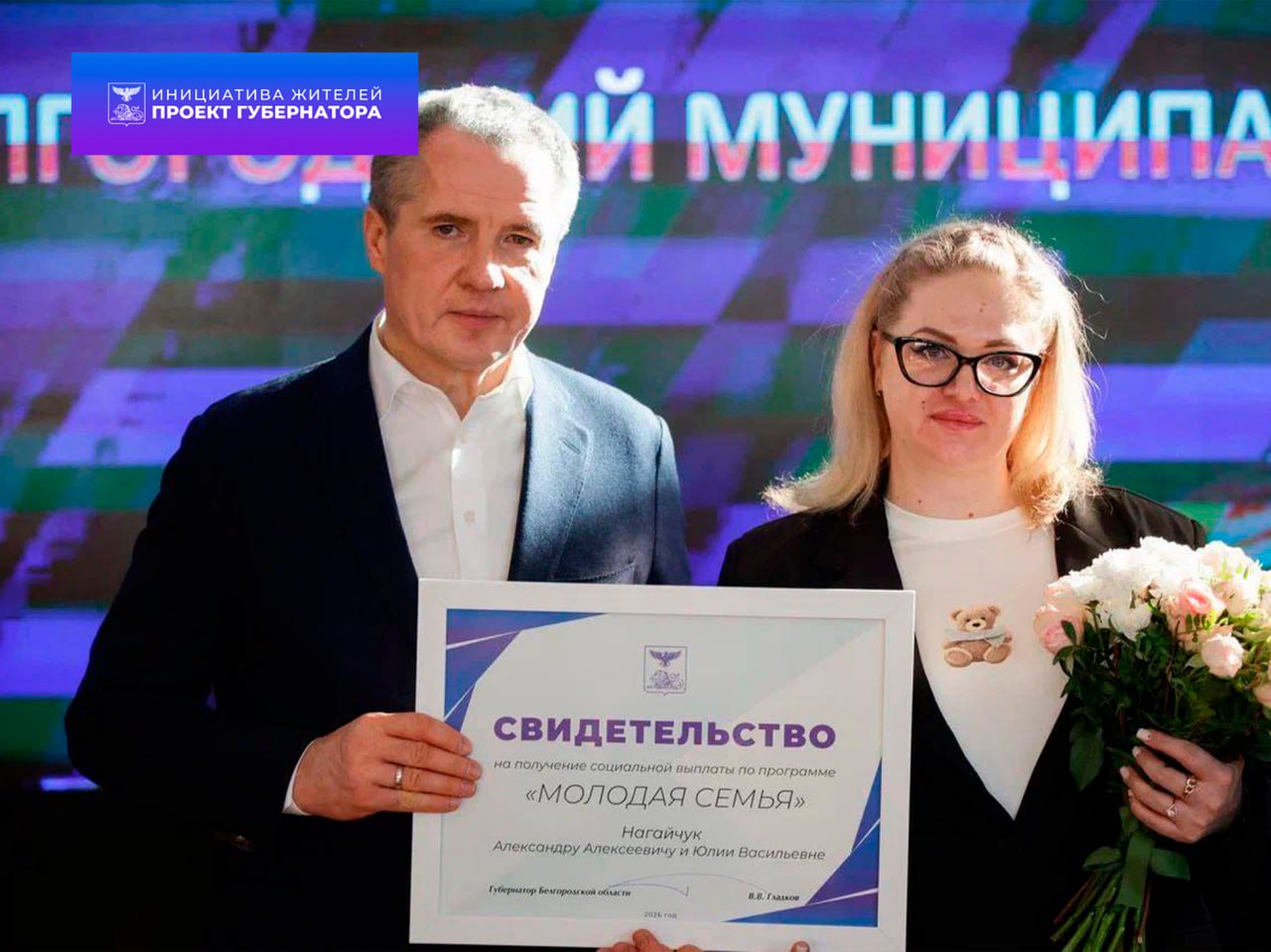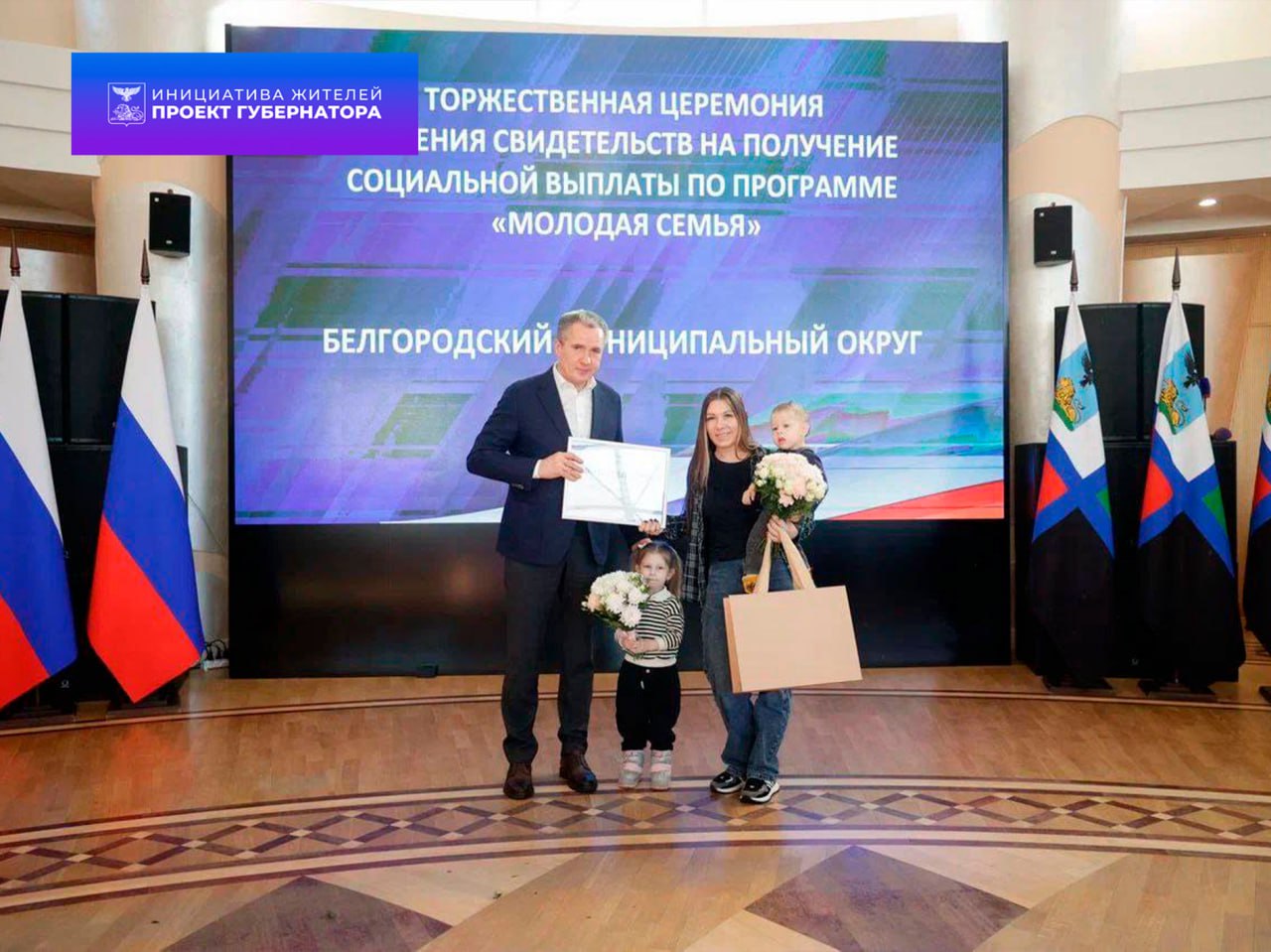 Губернатор Белгородской области Вячеслав Гладков вручил жилищные сертификаты 46 молодым семьям
