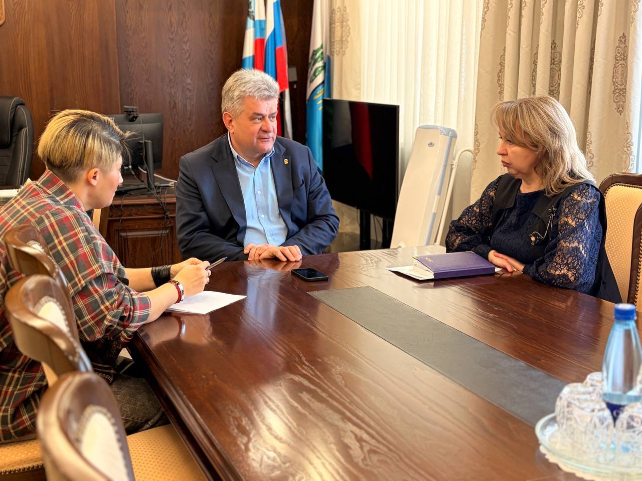 По возвращении из двухдневной Московской командировки встретился с заместителем главы округа по социальной политике Татьяной Абраменко и начальником управления молодежной политики, туризма и спорта Еленой Быковой.