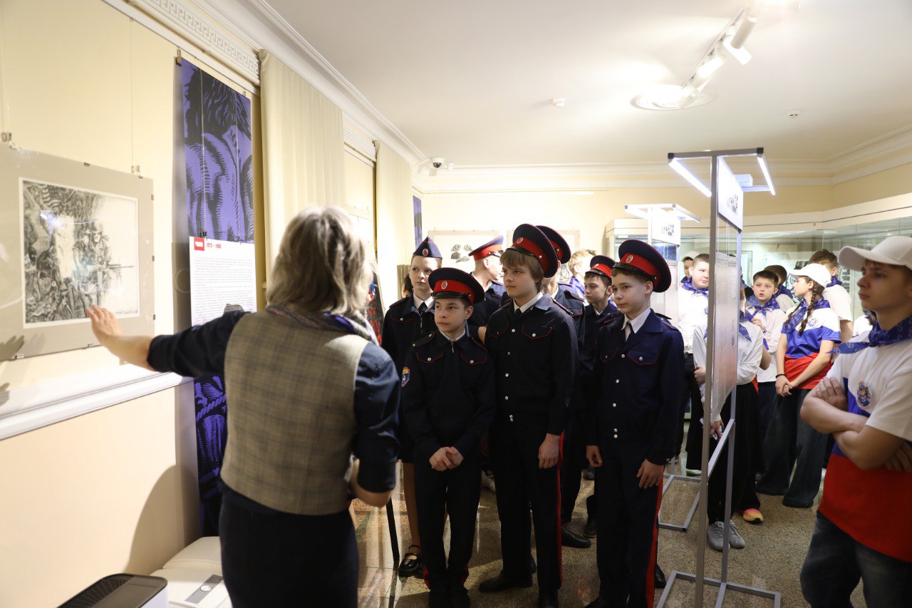 Первыми посетителями выставки стали учащиеся кадетских классов. Для юного поколения защитников Отечества была проведена экскурсия, позволившая погрузиться в героическую летопись нашей страны и осмыслить преемственность традиций служения Родине.