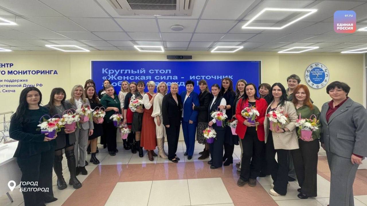 В преддверии Международного женского дня на базе Штаба общественной поддержки Партии состоялся круглый стол для жен участников Специальной военной операции. Мероприятие организовали сотрудники Ассоциации муниципальных образований Белгородской области.