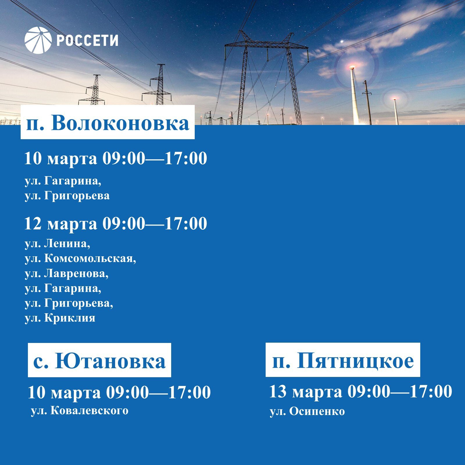 Волоконовский РЭС информирует о плане отключения электроэнергии с 09 по 15 марта 2026 года